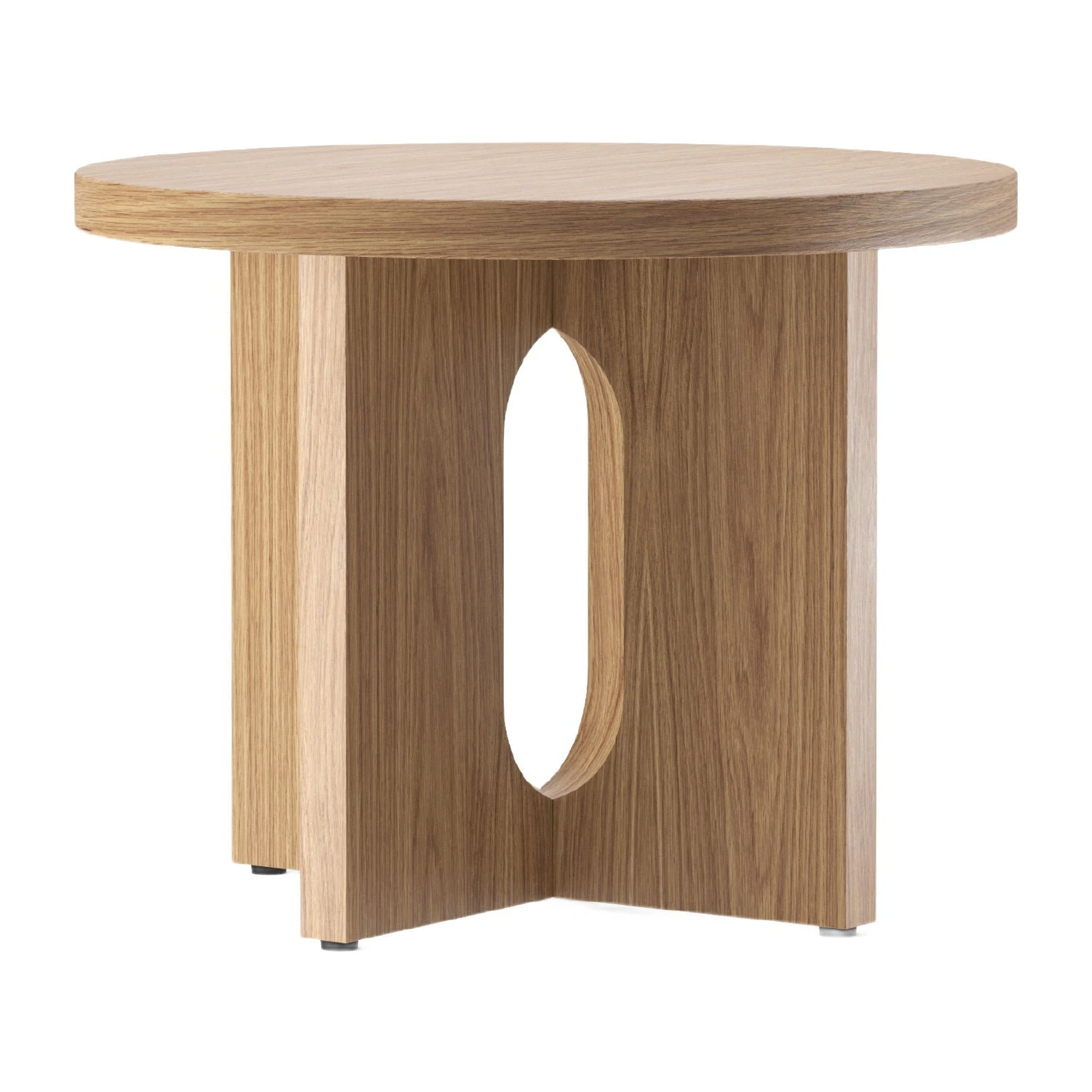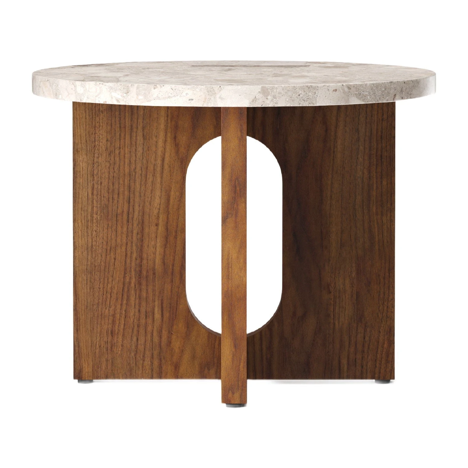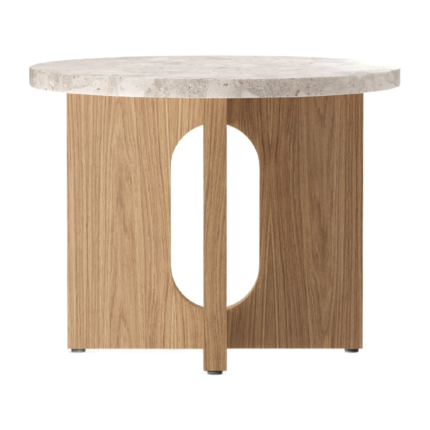Perfectly proportioned with an intriguing combination of masculine and feminine elements, the Androgyne Side Table is a lesson in contrasts. Making clever use of craftsmanship, the round tabletop overhangs the wide, flat legged base in a meeting of solid and soft lines. Both base and top are sold separately and are available in natural or dark stained oak, walnut and Kunis Breccia stone respectively for a complete and customised furniture piece.