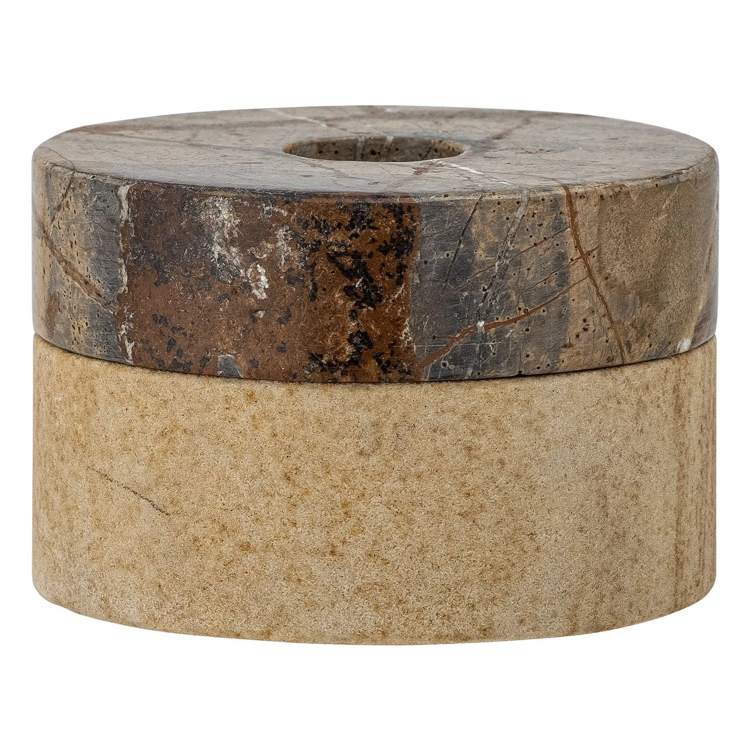 The Dalin Votive by Bloomingville can be used both as a votive and candlestick. It comes in a cool mix of brown nunances and is made of sandstone. The beauty of a natural stone is that no two pieces are alike. Each one is a unique work of art forged by Mother Nature over millennia, using heat, pressure and lots of different minerals and organic materials. The way these minerals settle into the stone is what causes the enormous play of colors, patterns, textures and veins in each slab.