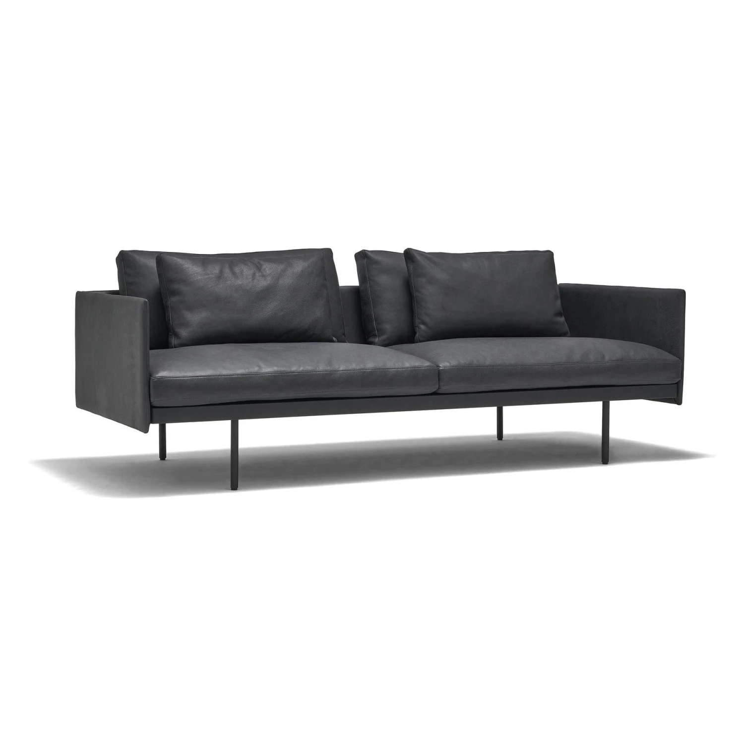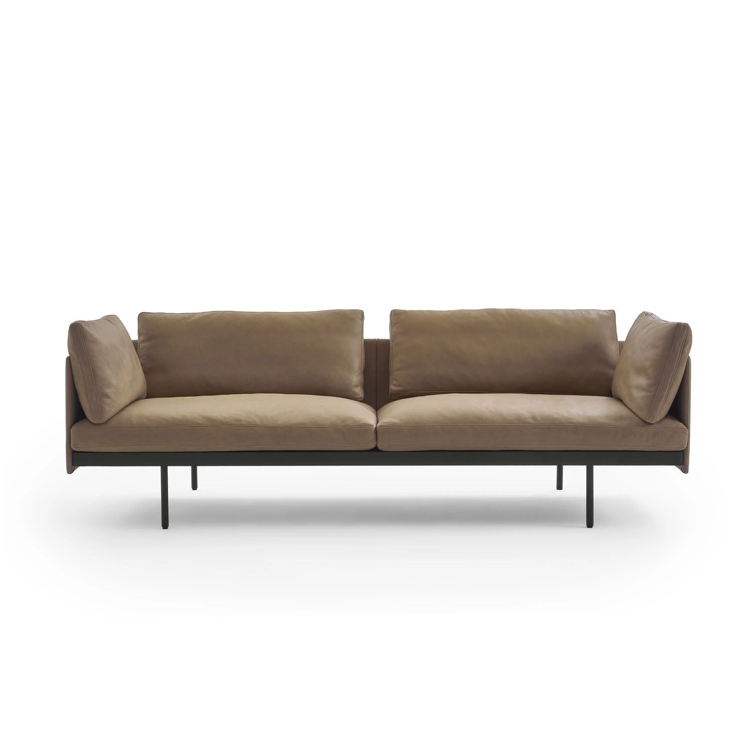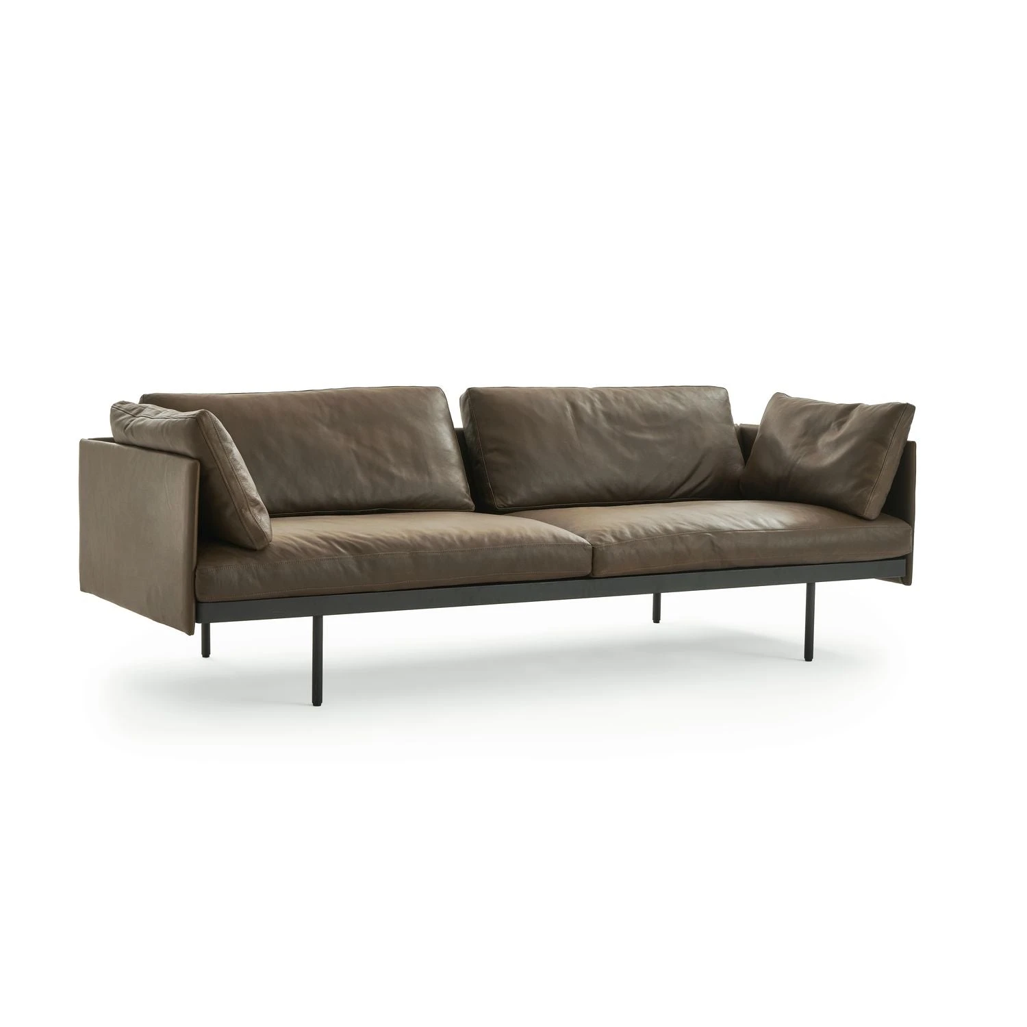 Casually slack cushions contrast with super-sleek arms, sitting on a tidy steel base for an effect that is loaded with low key elegance. Looking super comfortable, this sofa presents a new level of comfort while maintaining its high level of contemporary design.