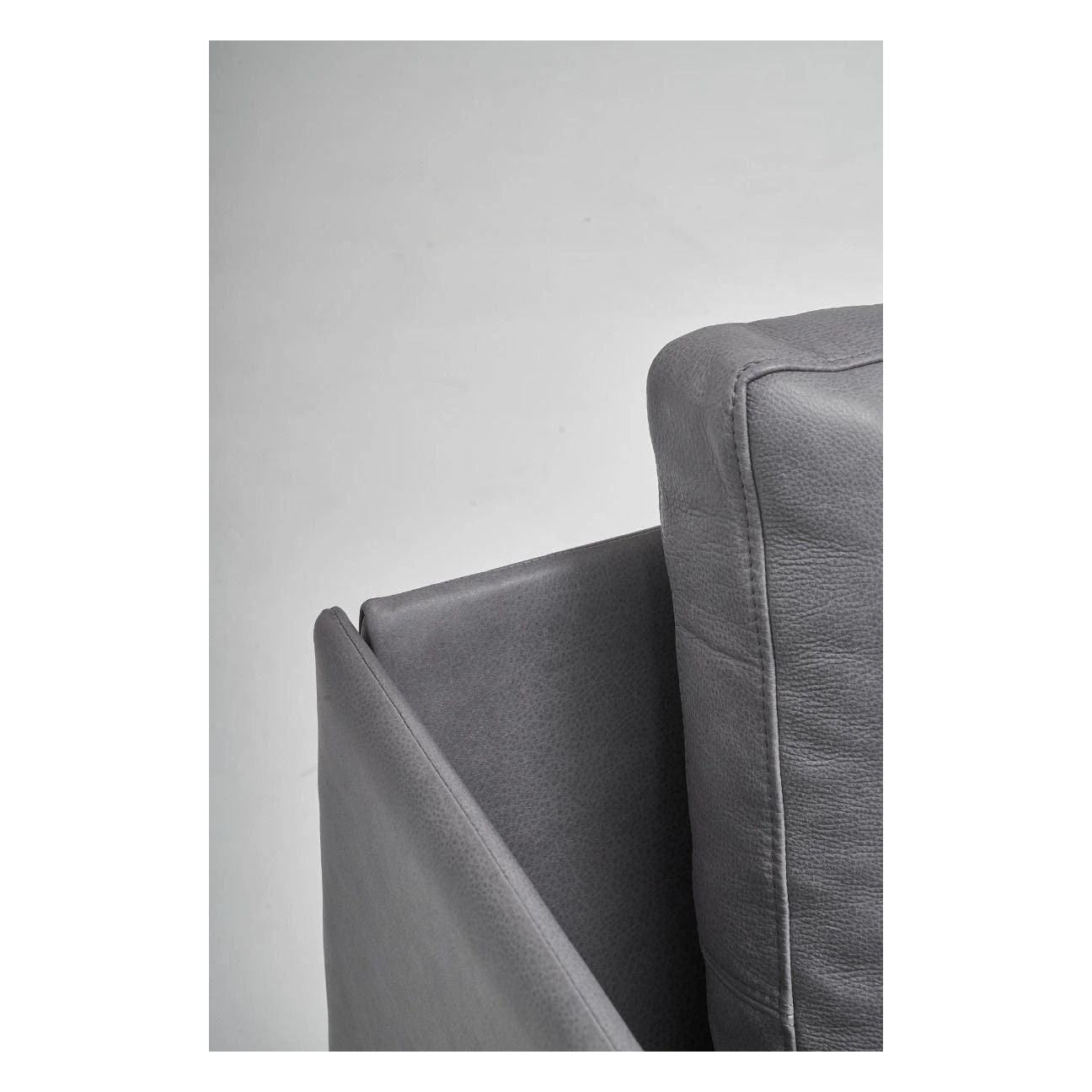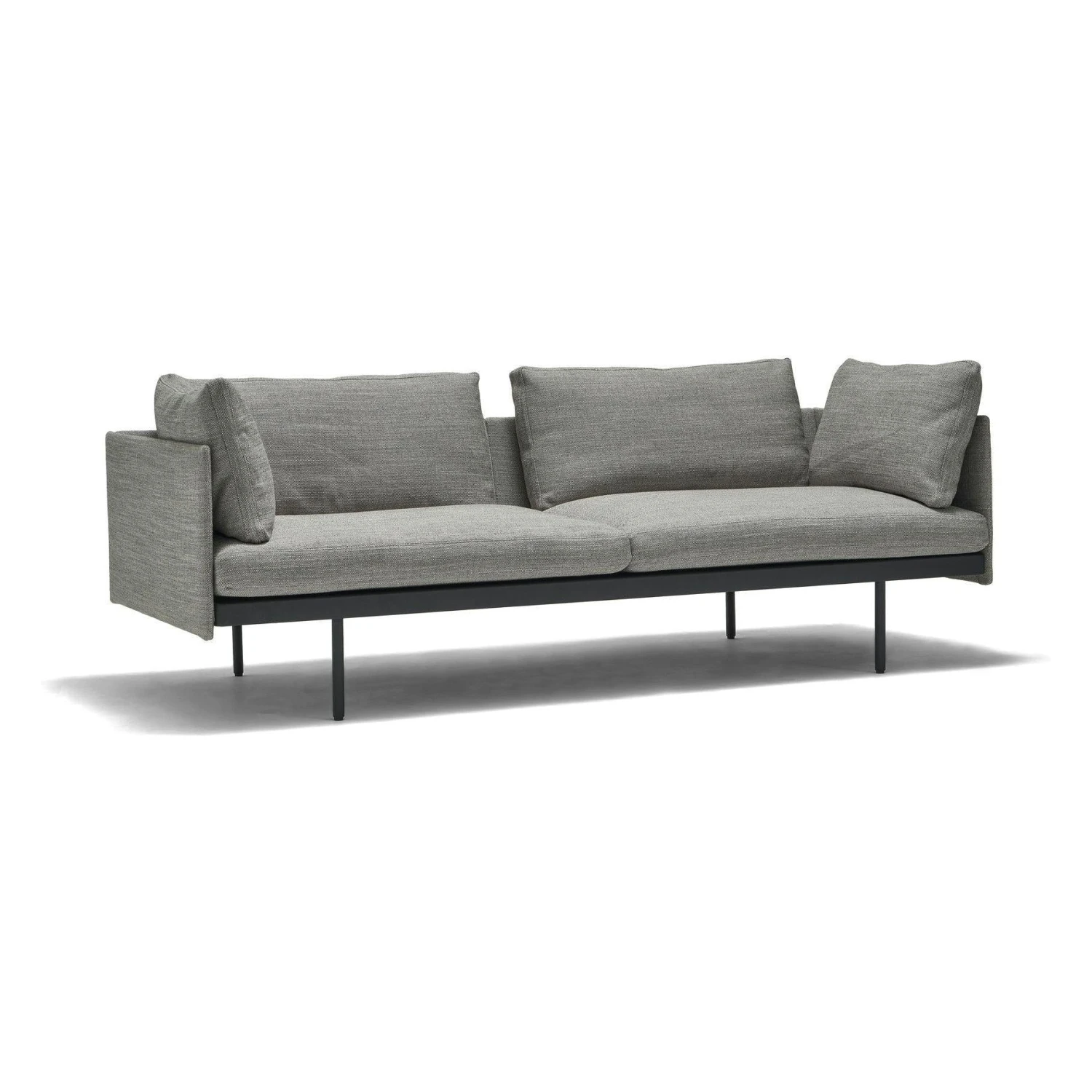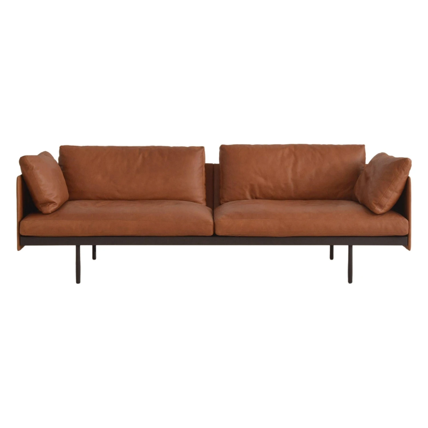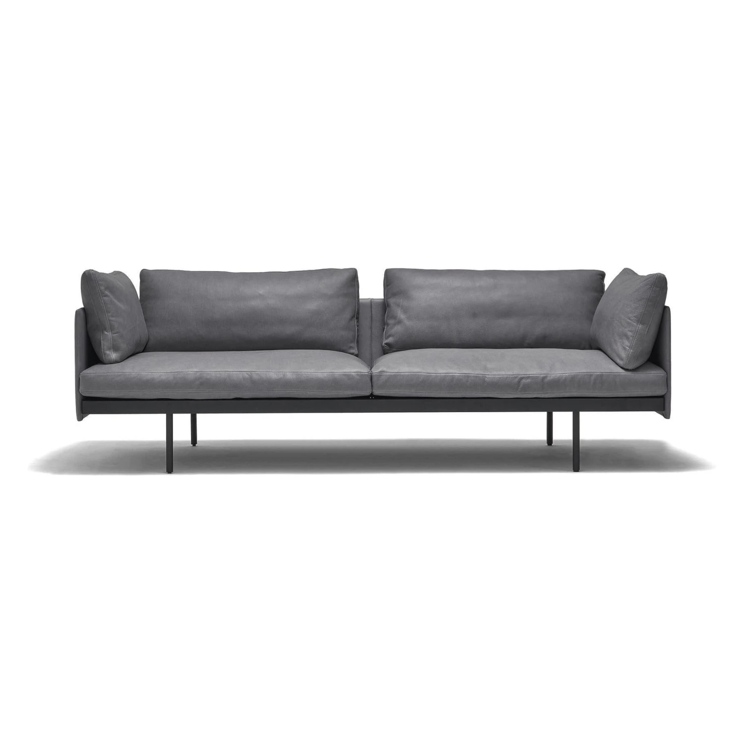 Casually slack cushions contrast with super-sleek arms, sitting on a tidy steel base for an effect that is loaded with low key elegance. Looking super comfortable, this sofa presents a new level of comfort while maintaining its high level of contemporary design.