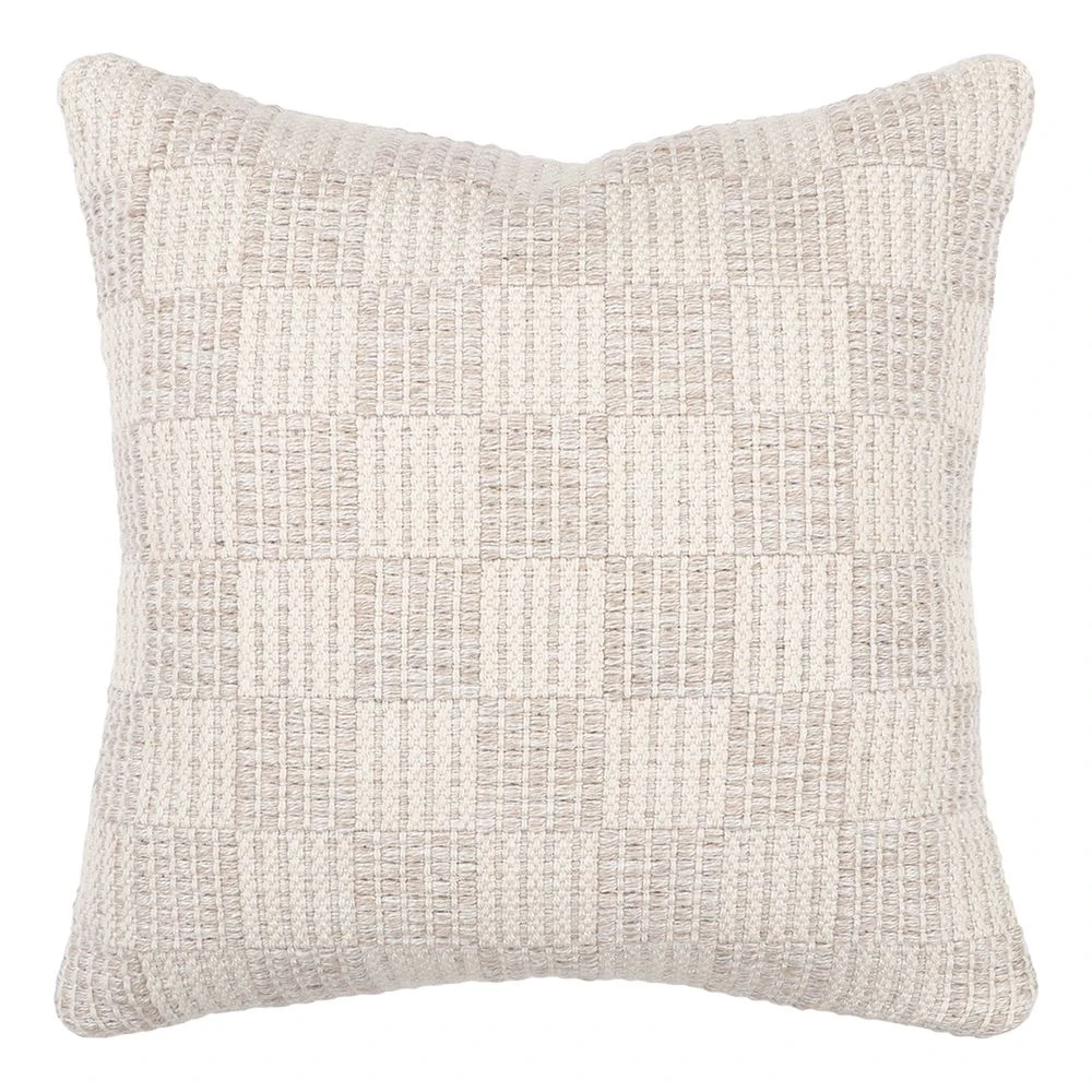 Elevate your outdoors with the soft nougat and almond tones of our Carter cushion. Handwoven in a textural check design, this versatile piece transitions seamlessly to indoor settings.