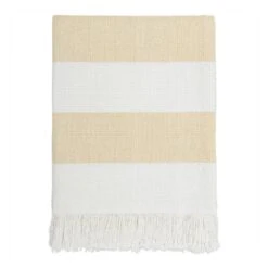 Capture the feeling of summer with the carefree aesthetic of this 100% cotton throw. Featuring a wide stripe design in a powdery butter shade, the Cheltenham is cross woven with white and finished with frayed edge detailing. Inspiring memories of sun-drenched picnics and relaxed coastal living, this soft, medium-weight throw is the perfect summer accessory.