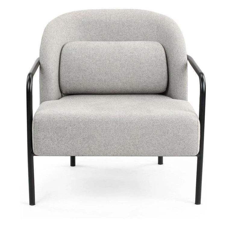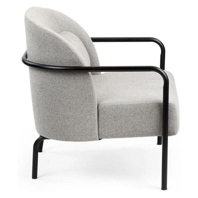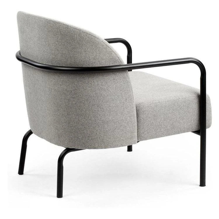 A soft, moulded foam seat and back with integral bolster is supported by a contrasting steel frame that wraps the curved back. Perfect for home, office or hospitality spaces where relaxed seating is needed.