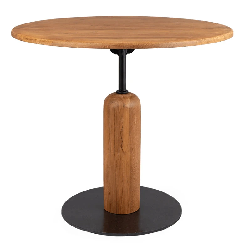 Modern Art Deco inspiration has replaced glass shading with reclaimed, attractively turned solid teak stand and a powder coated steel base, topped with a graceful teak shade, setting the style on any bistro dining or side table.