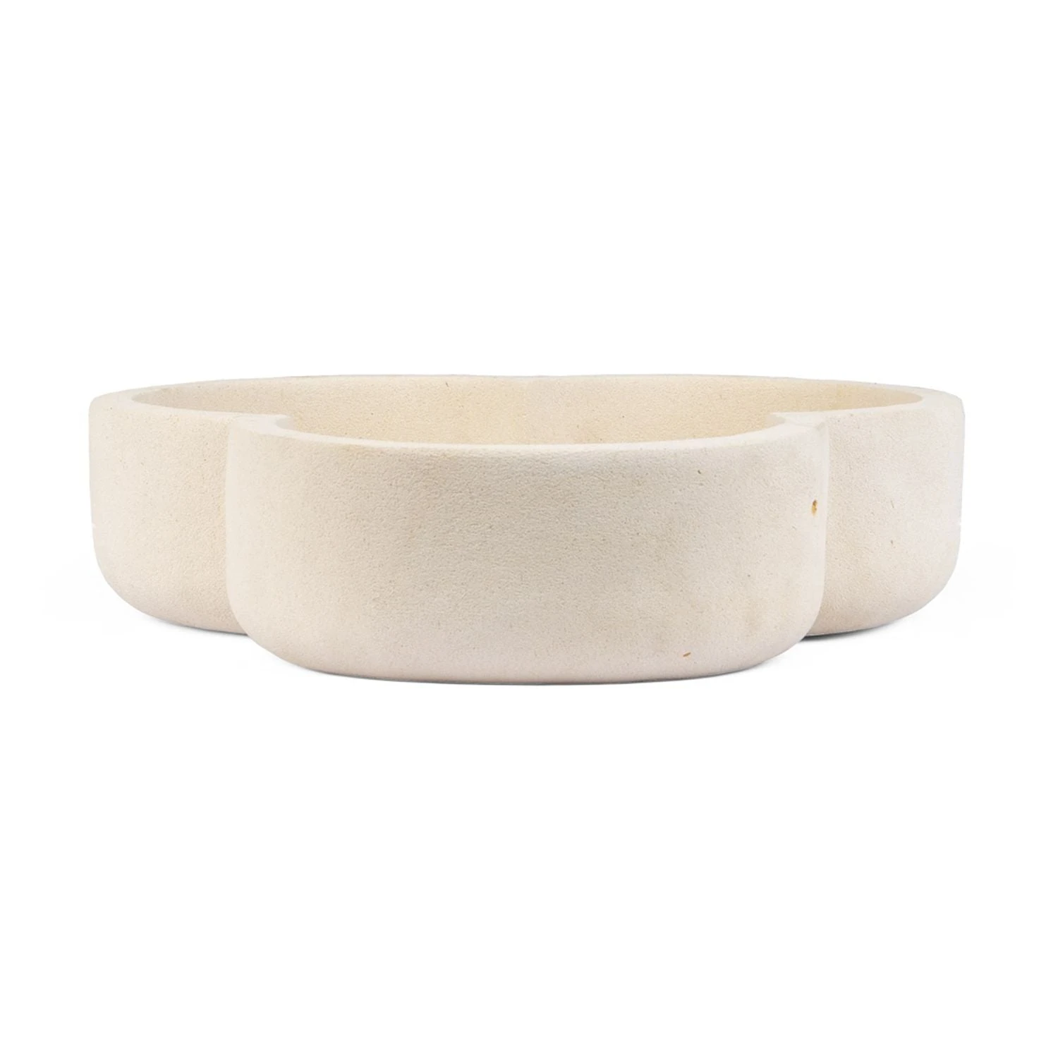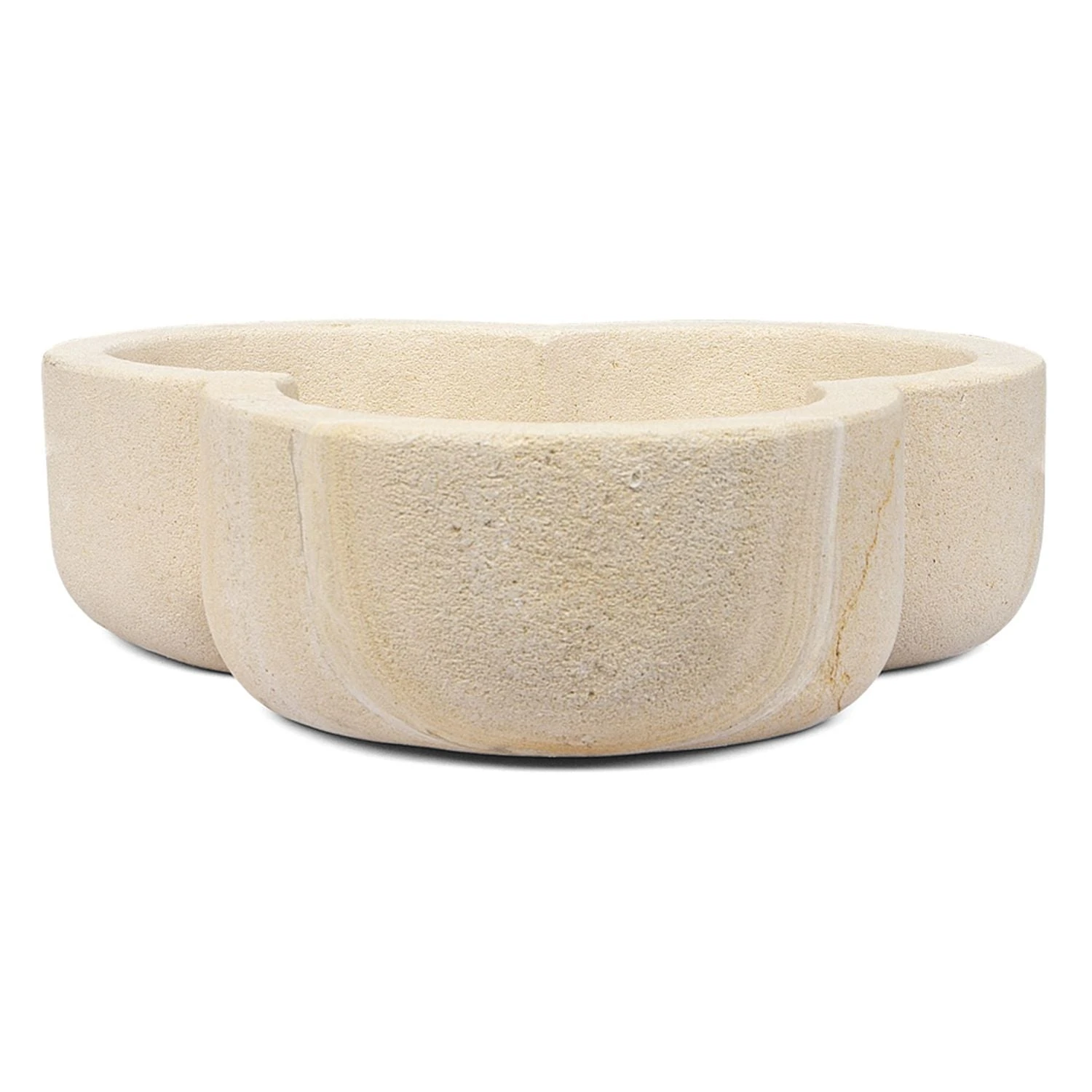 The dBodhi Bowl Range are finely sculpted vessels, inspired by the dBodhi logo mark. Each is a ‘Trefoil’ shape consisting of three interlocking cylinders. Hand crafted in local Java sand stone, each bowl has a beautifully curved base and because of the delicate veined characteristics of the stone, ranging from pale pinks and yellows to golden honey hues.