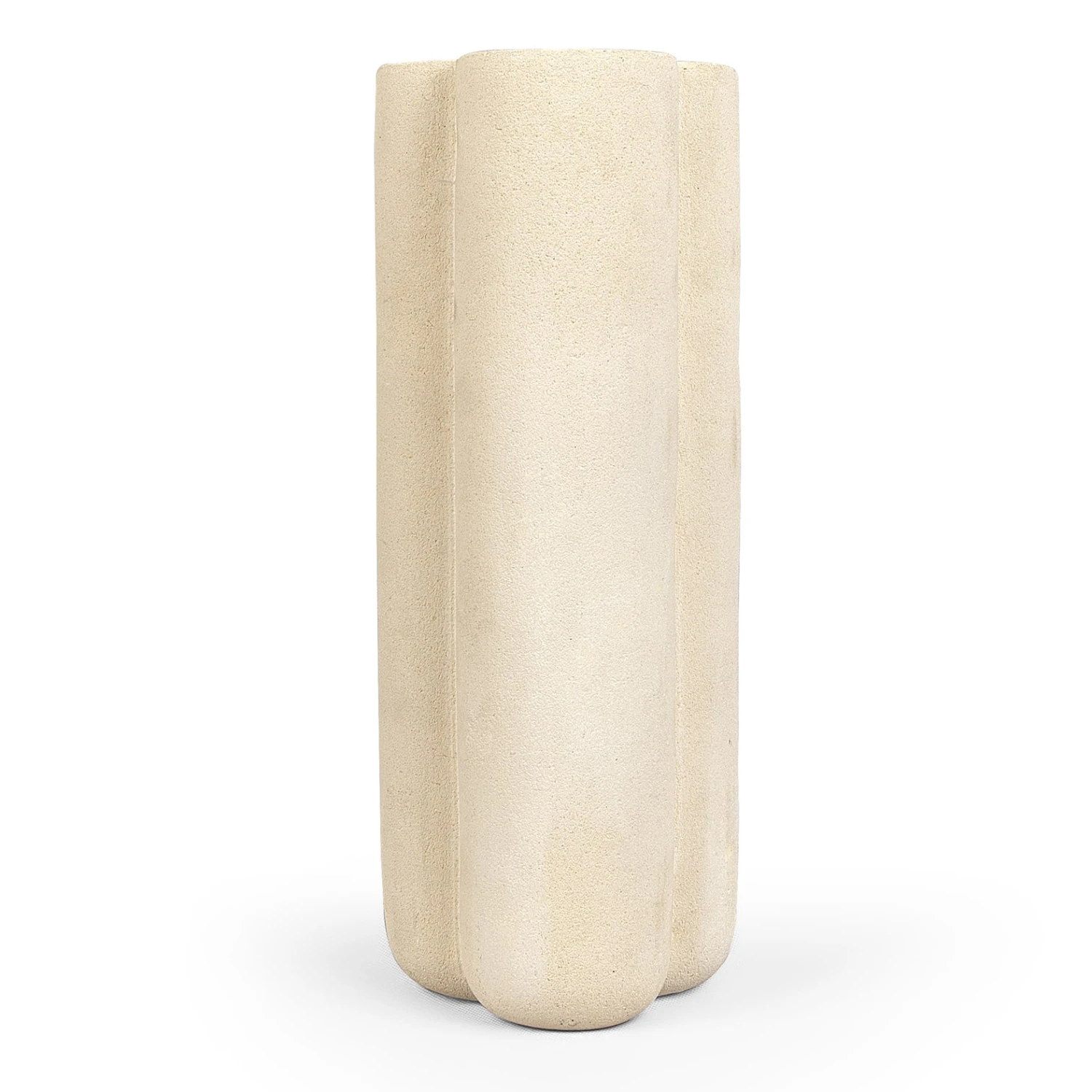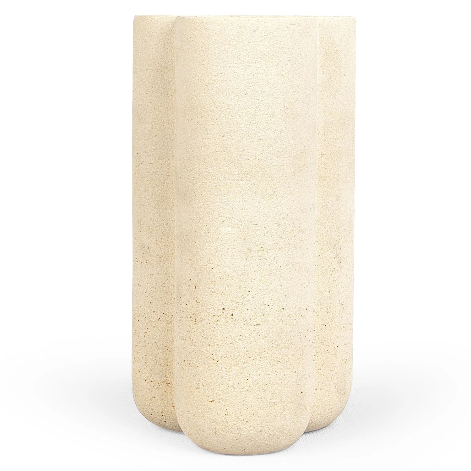 The dBodhi Straight Vase Range are uniquely and beautifully sculpted forms. Inspired by the dBodhi logo mark, a ‘Trefoil’ shape consisting of three interlocking cylinders, creates an elegant and striking vase. Hand crafted in local Java sand stone, each vase, because of the delicate veined characteristics of the stone, is individual in color.