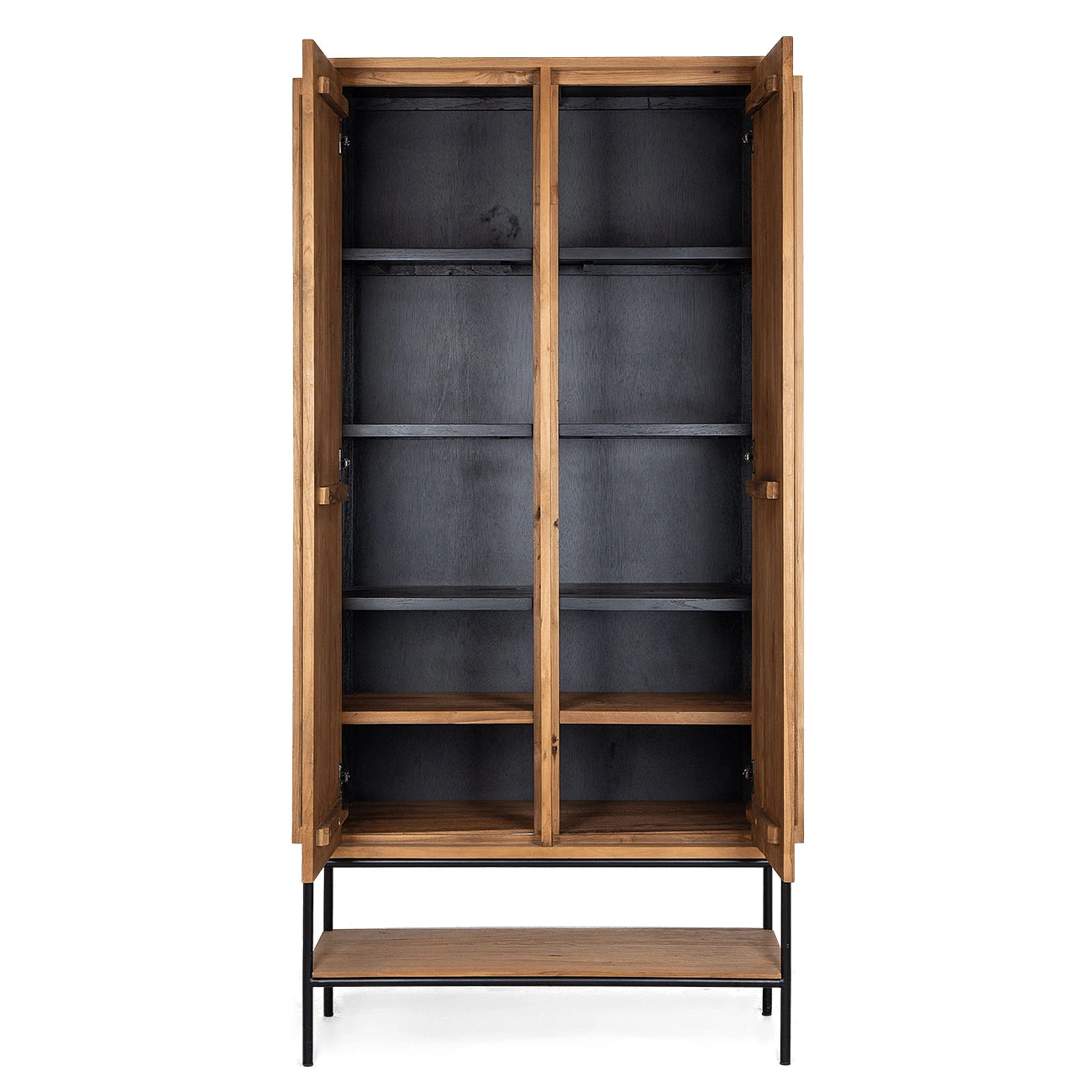 With its clean-lined silhouette and impressive woodwork, the Outline Cabinet is a rich piece of furniture that’s easy to match with any interior style. The two doors open to reveal five shelves on both sides to keep your stuff organized and out of sight, the bottom rack is open. The cabinet is handcrafted from reclaimed teak and iron.