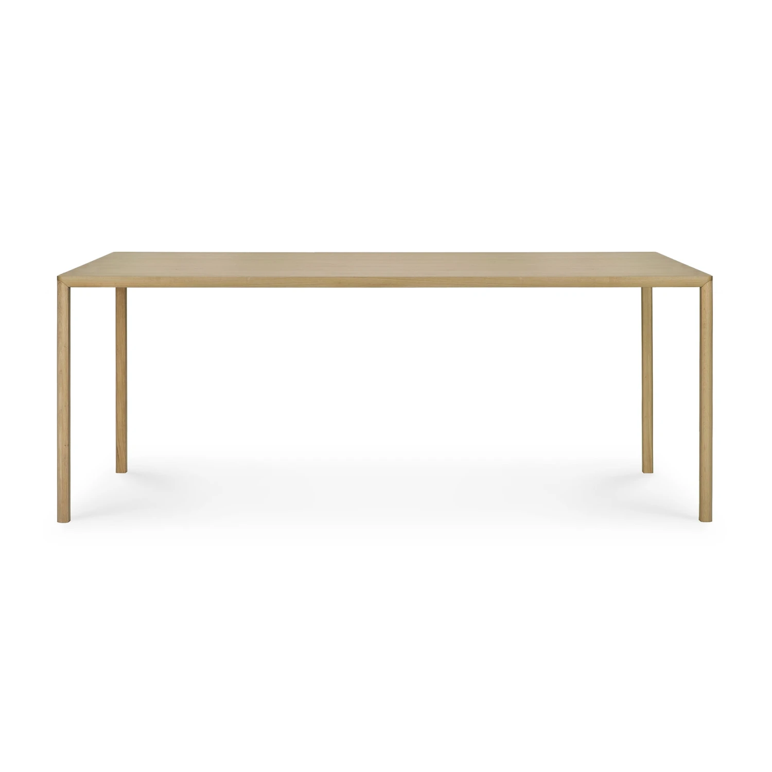 With sleek bevelled legs, the tabletop seems to float effortlessly above. The Oak Air is a strong and lean dining table disguised in a simple, clean and minimal design. Inspired by the lightness experienced with the bed of the same name.