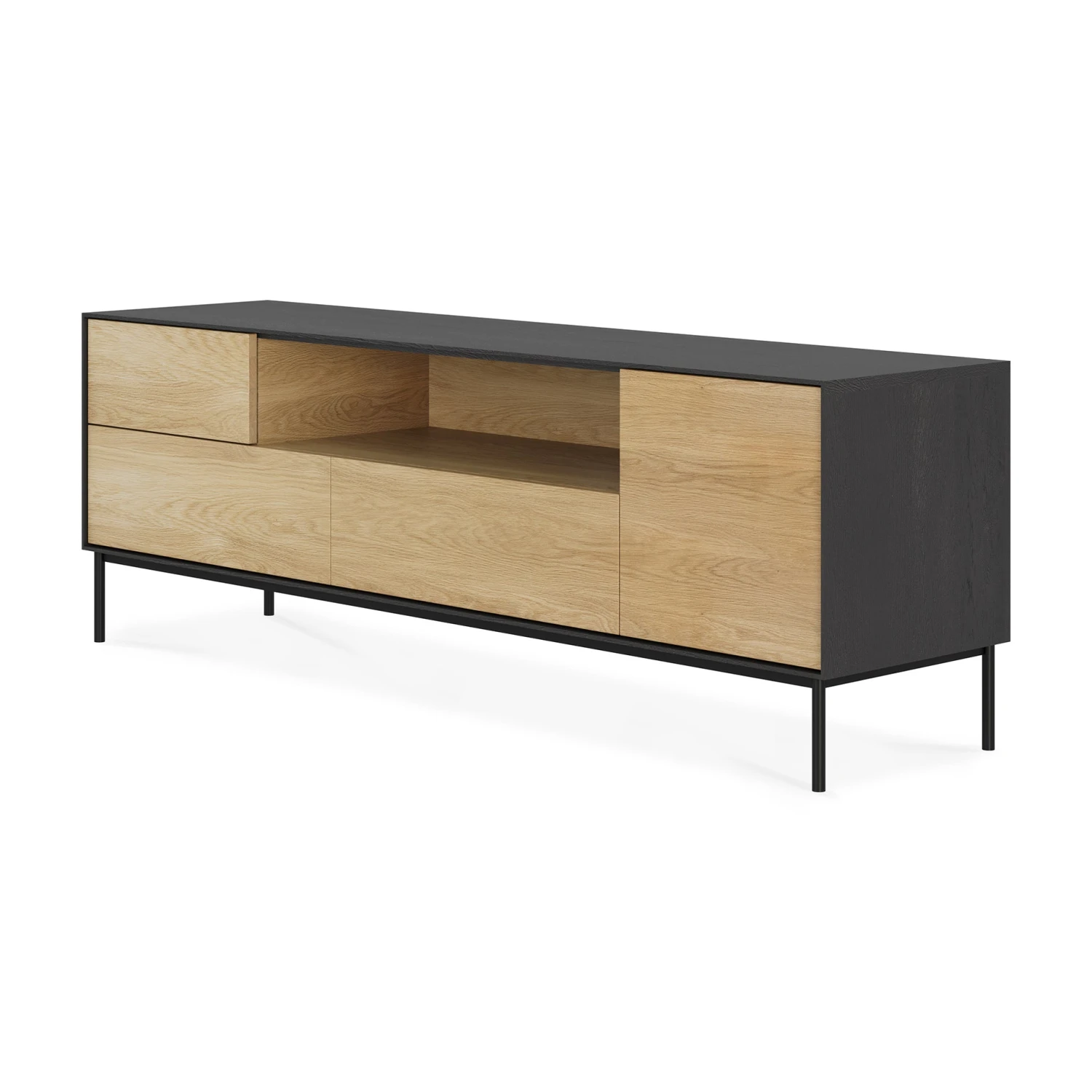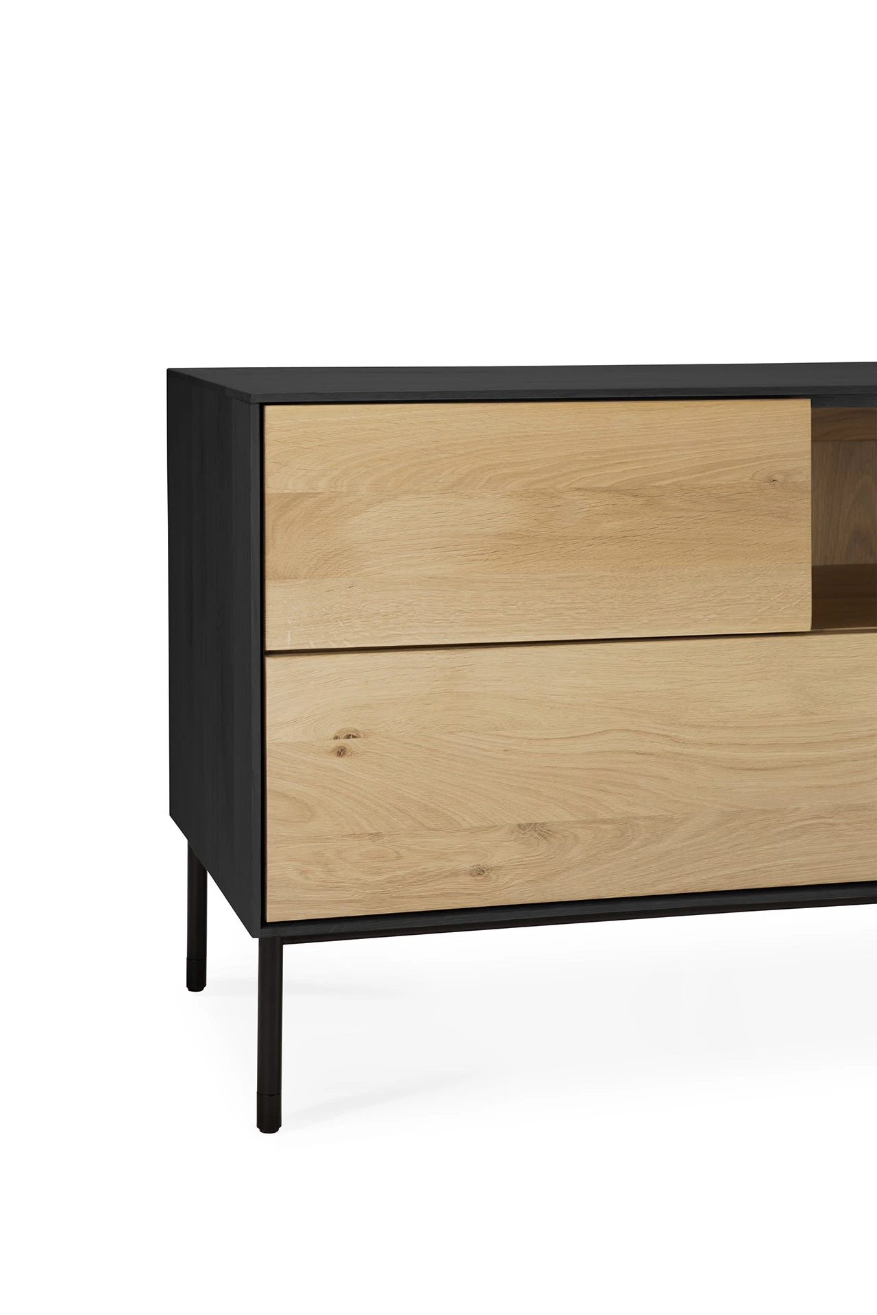 The Blackbird TV Cupboard showcases a juxtaposition of a black outline and a classic natural wood finish to introduce Ethnicraft’s new Blackbird collection. The contrasting tones are striking and bold, yet leaves a soft, polished allure. This wonderful tv cupboard is constructed from the highest grade European wood, carrying with it a solid structure featuring organic knots and grains which amplify the beauty in the detail. An array of drawers and doors provide ample space to store all your tv needs, making this the perfect entertainment unit fit for any interior. For our Blackbird collection, designer Alain van Havre brings together opposing elements, combining soft round legs and eye-catching graphic lines into light and airy designs.