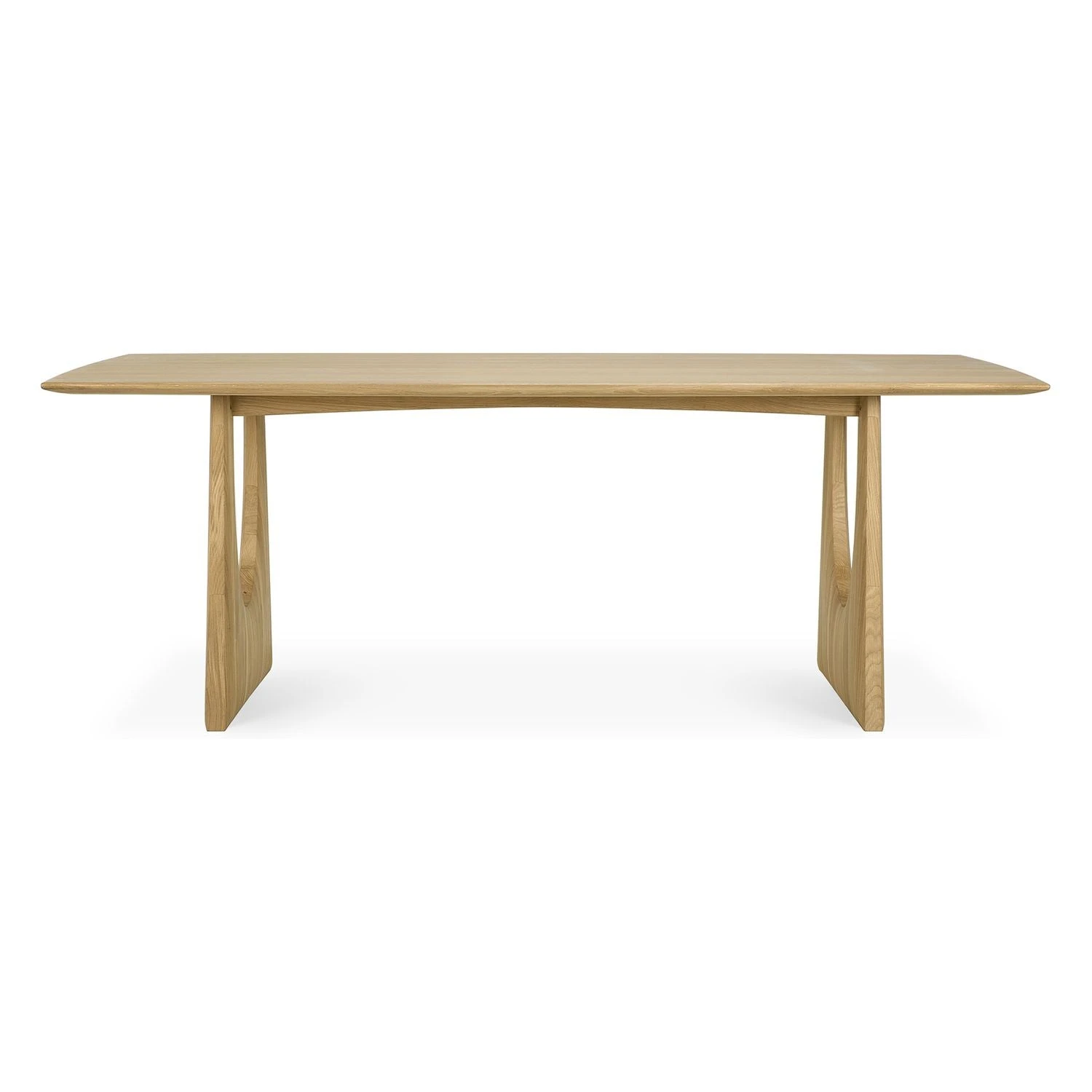 With enriched shapes and unexpected details, the Geometric solid oak dining table is a statement item, equally at home in the dining room or workspace. Luxury comes with its length, which is offset by softened edges and natural lines. Interesting shapes are in play to add volume and practical comfort.