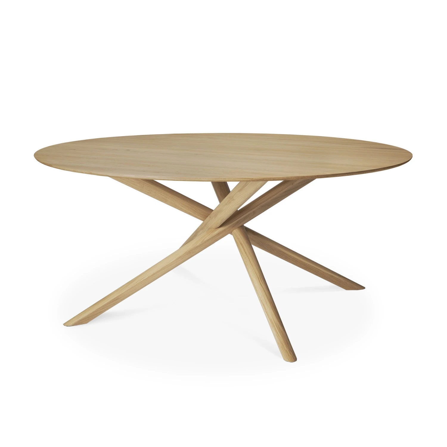 The Mikado dining table, designed by Alain van Havre, has been one of our most recognizable designs for years. For its round version, we kept the same eye-catching construction but aimed for a visually lighter design. In an exercise of balance and stability, the legs are thinner and more refined with round edges to fit the solid oak dining table’s new shape.