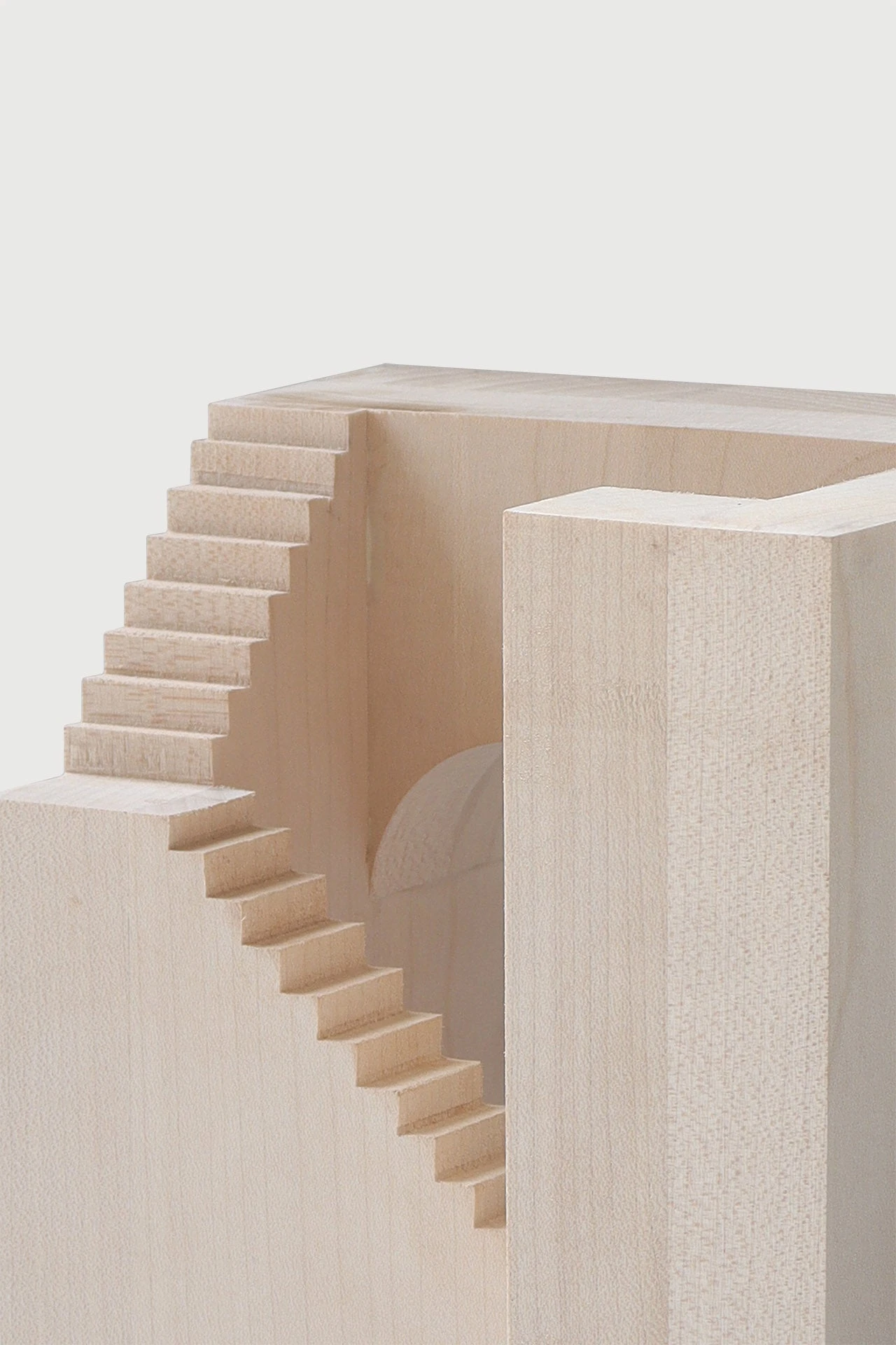 The stairs lead to a void, the walls rise to nothing, the ceilings seem useless. The work of David Umemoto exudes mystery, stimulates the imagination, but at the same time gives a sense of reflective discipline.