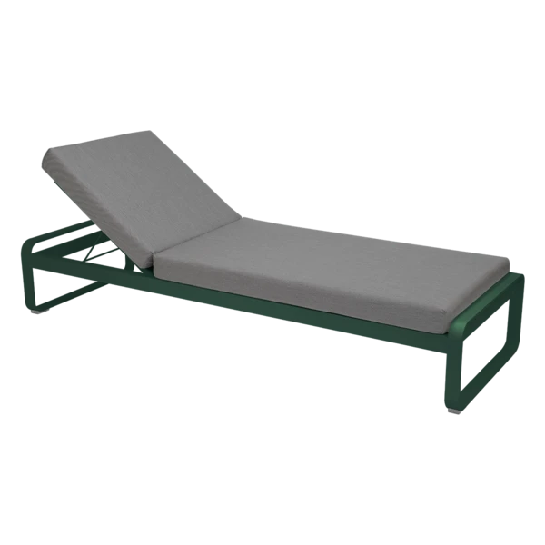 With Fermob, life is beautiful wherever you are – in your dining area, in your lounge area, outdoors and indoors, even by your pool… With its Bellevie sunlounger, from the Pagnon & Pelhaître design studio, the dolce vita is right before our eyes. And it raises the standards of the chaise longue to new heights. How can you not imagine yourself relaxing under the summer sun? For a sumptuous nap, straight after taking a dip in the pool in summer. Just imagine yourself flicking through a magazine or simply enjoying the breeze gently swaying the olive branches. This gently curved sunlounger, as with the whole Bellevie collection, offers three positions, including a full lie-flat position. If you just want to relax or have a chat, raise the backrest of your premium sunlounger. When savouring a cocktail or reading a book, raise it up another notch. Enjoy the comfort of its mattress, made from high resilience, articulated polyurethane foam and its cover can be removed and washed in the machine. Appreciate the softness of its Sunbrella® fabric, a 100% solution dyed acrylic outdoor cover, resistant to stains, mould, tears and abrasion. The 100% aluminium frame of your high-quality sunlounger is ultra resistant and can withstand any situation, even at the seaside. A clever little detail that makes all the difference: a non-slip pattern underneath the mattress of your chaise longue helps keep it in place on its frame and stops it slipping. This French-made chaise longue promises you hours of pleasure on your pool deck. Close your eyes and be transported… Imagine yourself on this sunlounger and, for optimal comfort, treat yourself to the headrest from the same collection, specially designed to fasten onto the mattress. Now you’re in the holiday mood, you have all the time in the world to select the colour of the fabric and the frame of your future Bellevie sunlounger.