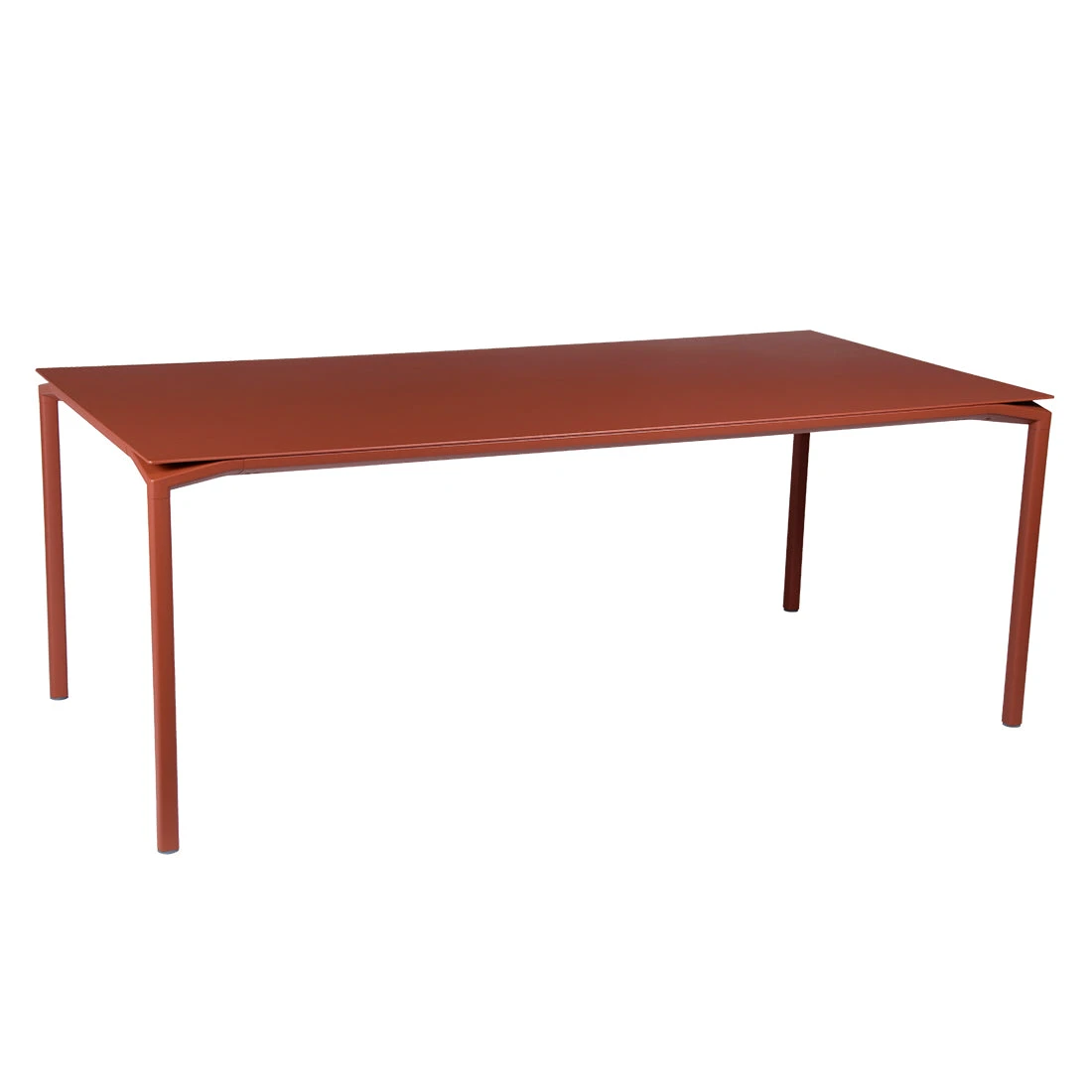 In the market for a truly distinctive outdoor furniture set? The Calvi rectangular outdoor table could well be the centrepiece you’ve been looking for. With its contemporary, on-trend look, it’s sure to leave your guests green with envy. The most distinctive feature is the table top that seems to float above the legs – an effect created by the space between the top and the legs at all four corners of the table. But it isn’t just light to look at. This table reflects the very best of Fermob’s expertise in aluminium, injected at the corners to produce a table top that’s extremely thin yet no less hard-wearing. This ingenious design means it’s equally suited to use as an indoor table. Despite its imposing size, the Calvi rectangular table is light enough to move around with ease, indoors or outdoors