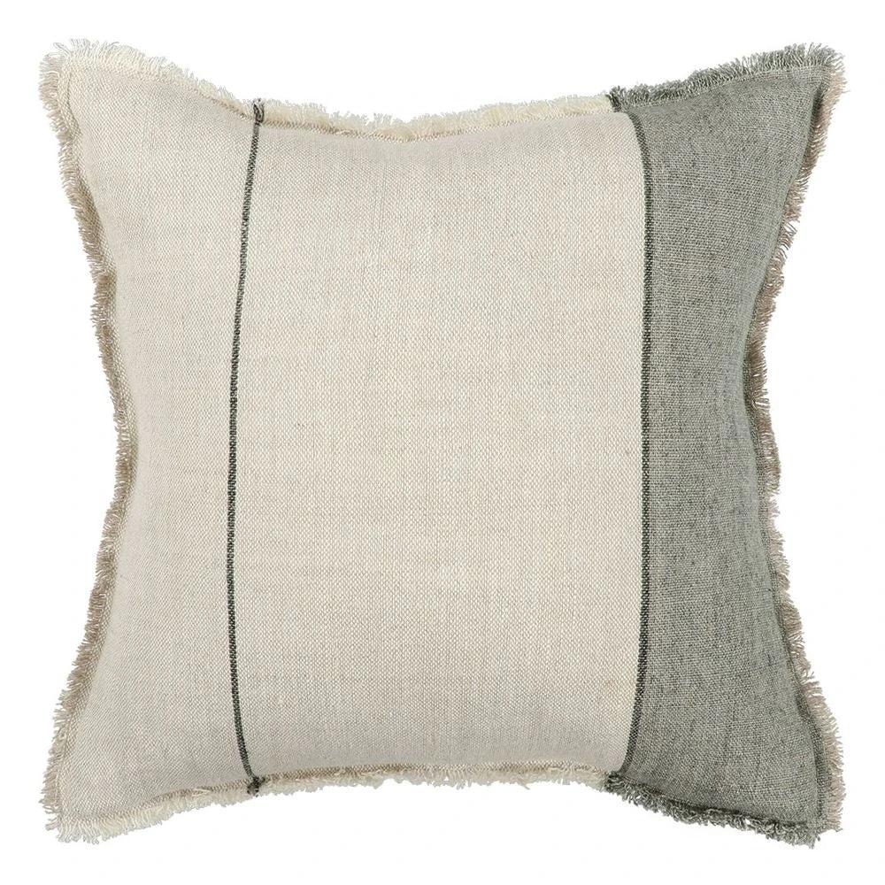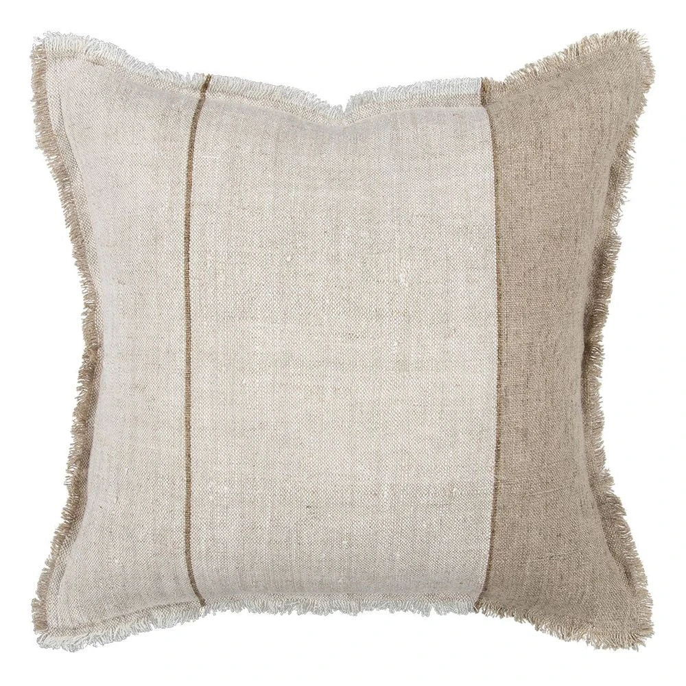 Country charm is given a contemporary twist, with the raw fringing and understated texture of our Frankton cushion. Crafted from thick, textural linen, the asymmetric design creates a modern take on classic style. Shades of ecru and navy create a relaxed feel, and pair effortlessly with Cyprian Oatmeal and Arcadia Cloudburst cushions.