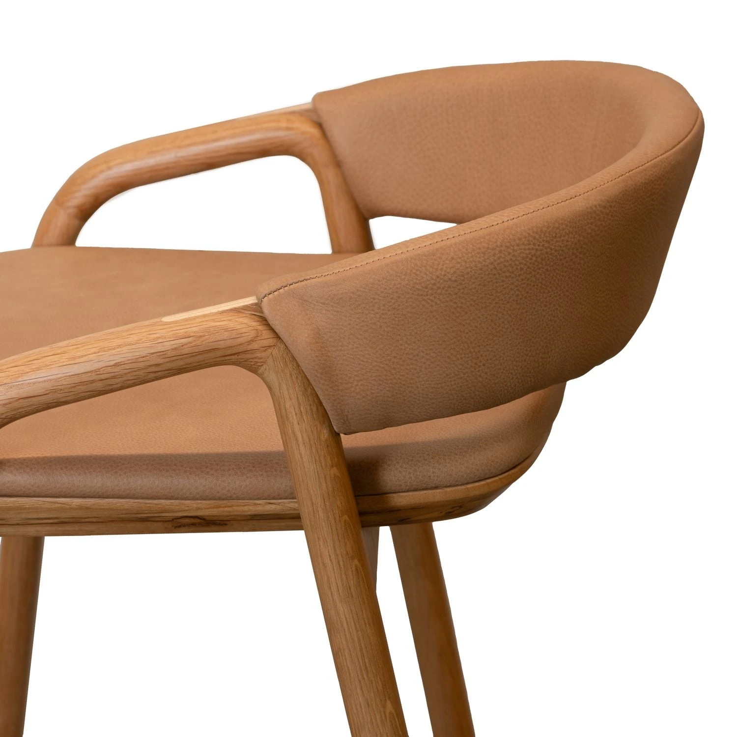 The design for Ryota Yokozeki’s Inlay counter stool comes from a desire to achieve new and challenging forms in wood while still showing respect for the material. Similar to an elegant letter form, the counter stool has a curving plywood backrest that merges seamlessly with the solid wood arms and frame.