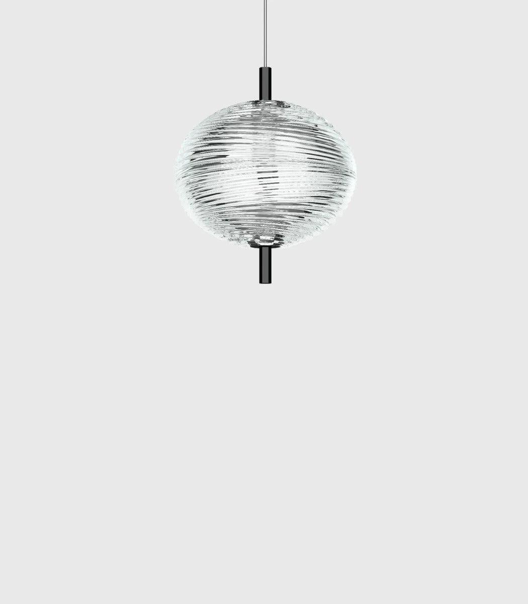 The Jefferson suspension lamp designed by Luca Nichetto is reminiscent of music and iconic images in psychedelic works of art from the 1960s. The vortex motif decorating the diffuser is embellished by the timeless classicism of Bohemian crystal, which diffuses evocative atmospheres of light. Dynamic in its many sizes and multiple compositions, Jefferson’s elegance keeps up with the excellent performance of LED interior lighting.