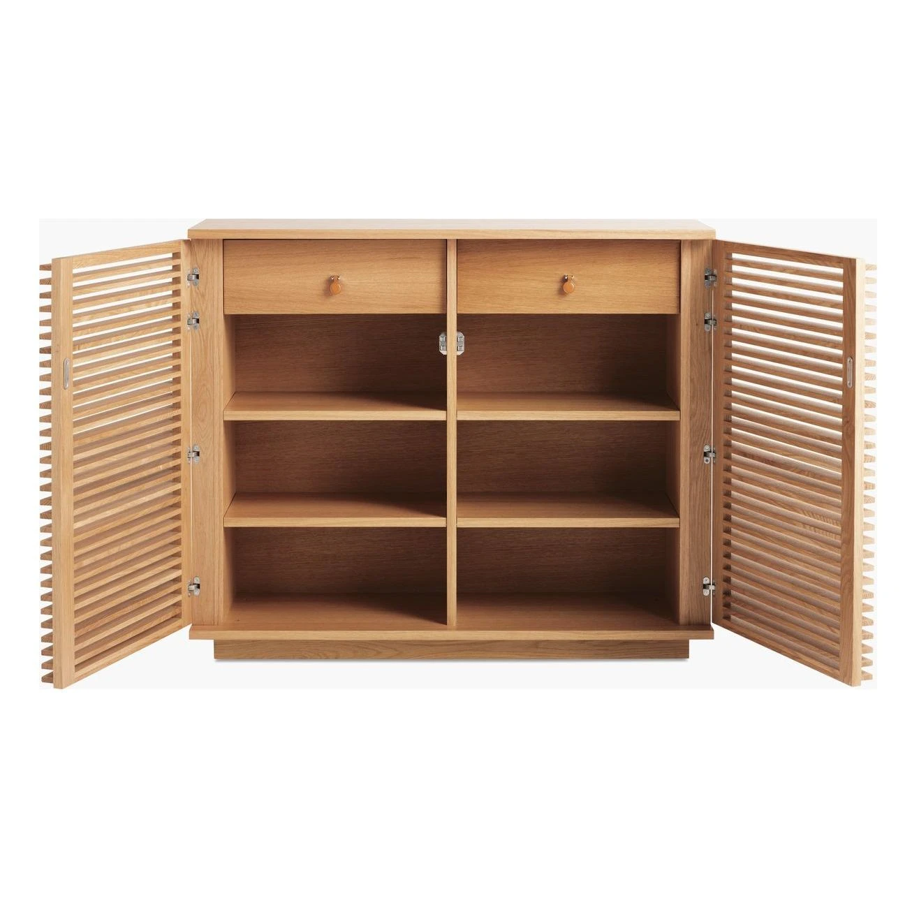 Created by award winning designer Nathan Yong, the line series emulates Yong’s desire to represent nature in our modern world. The horizontal lines lend a sense of restfulness to your interior space while concealing the structure within. The Console’s thin timber battens conceal the structure within and allow sound to permeate from and remote signals to permeate through the unit. It features ample space and is the perfect piece to have for your storage needs.