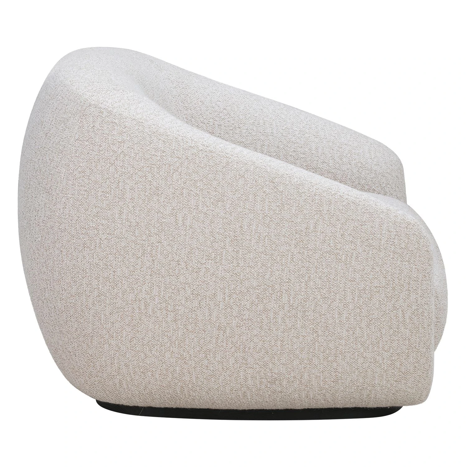 Resting atop a square and slightly recessed base featuring a return swivel function, the Montholon Chair seemingly soars above ground, prompting a lighter sentiment to its generous outline.