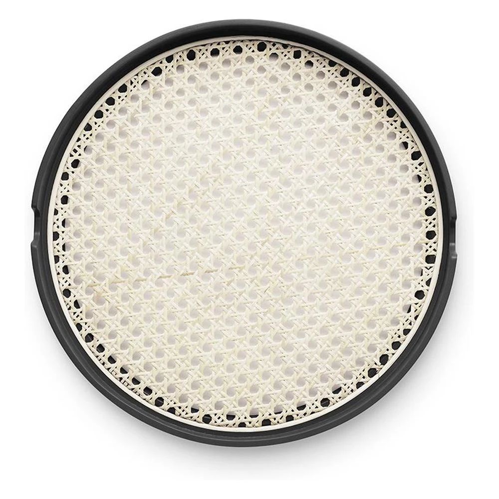 In the Salon tray, the airy wicker is edged with a prominent rim in painted veneer. The rim’s clean surface is broken by two symmetrical notches, which can be used to get a steady grip on the tray, while also adding form to the design. Classic materials and modern design fuse together to create a sense of edgy elegance.