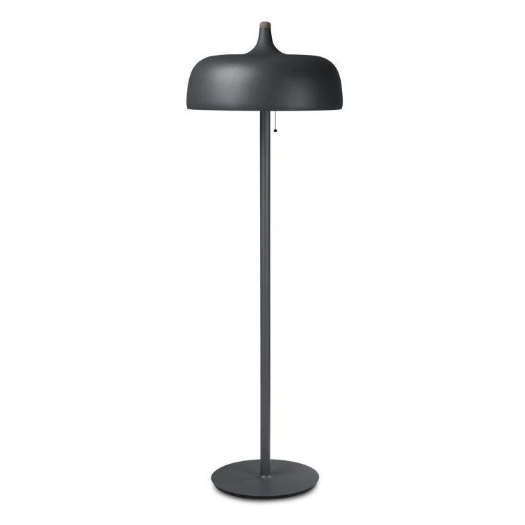 Available in white, dark grey and black finishes, the Acorn floor lamp has warm beech and walnut detailing on its aluminium shade along with a neat pull switch. The power cable is also concealed within a clean silk cord.