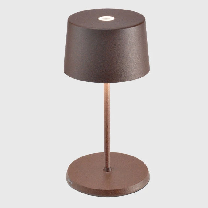 Olivia Mini Table Lamp is made of painted die-cast aluminium with a polycarbonate diffuser. Suitable for outdoor (lamp IP65 rating) and indoor use (lamp on charging base IP20 rating).