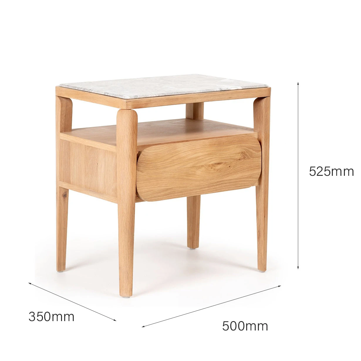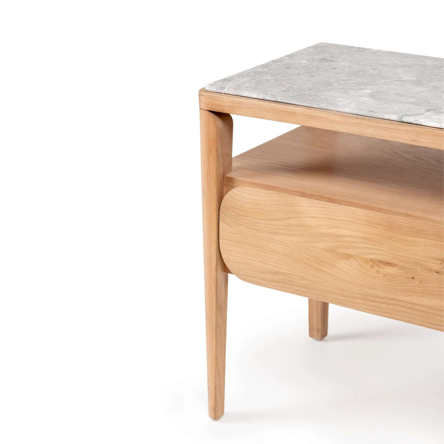 Inspired by the ethereal beauty of pearls and the elegant simplicity of Japanese architecture. Featuring a lavish marble top and a sturdy timber frame, the Paru Bedside Table seamlessly blends opulence with durability. Its compact and stylish design provides a practical storage solution for your bedside essentials, offering the perfect synthesis of sophistication and functionality. Elevate your bedroom with this timeless masterpiece, where every detail is an ode to artistry and refined luxury. The Paru Bedside Table stands as a testament to the fusion of opulence and practicality, adding a touch of grandeur to your nightly retreat.