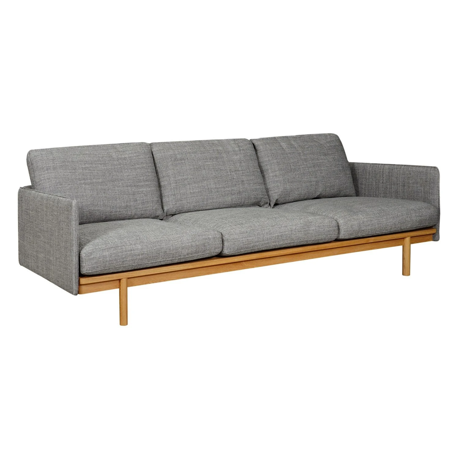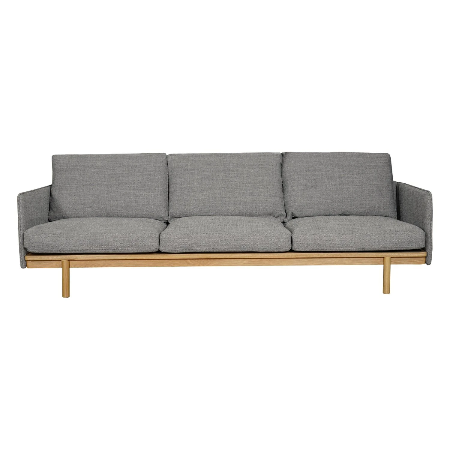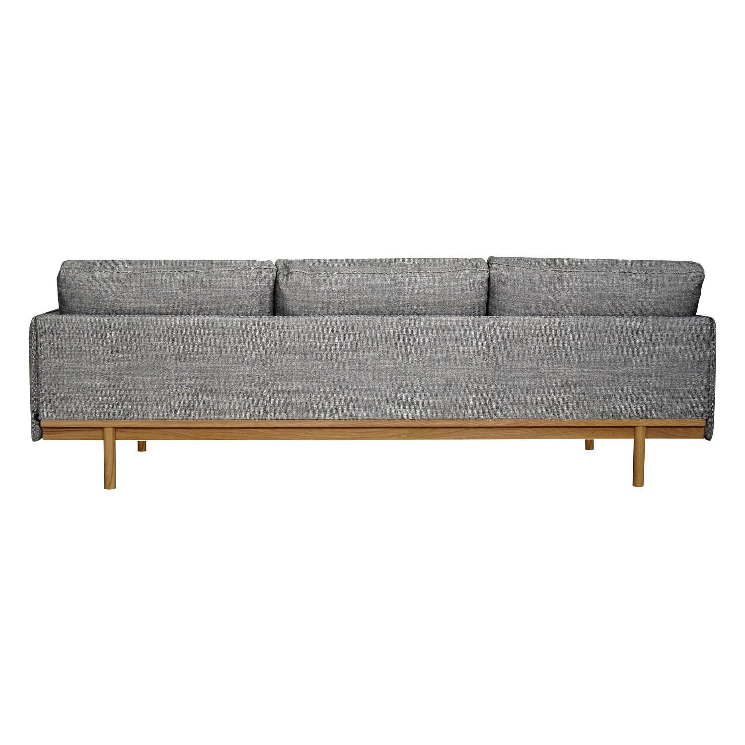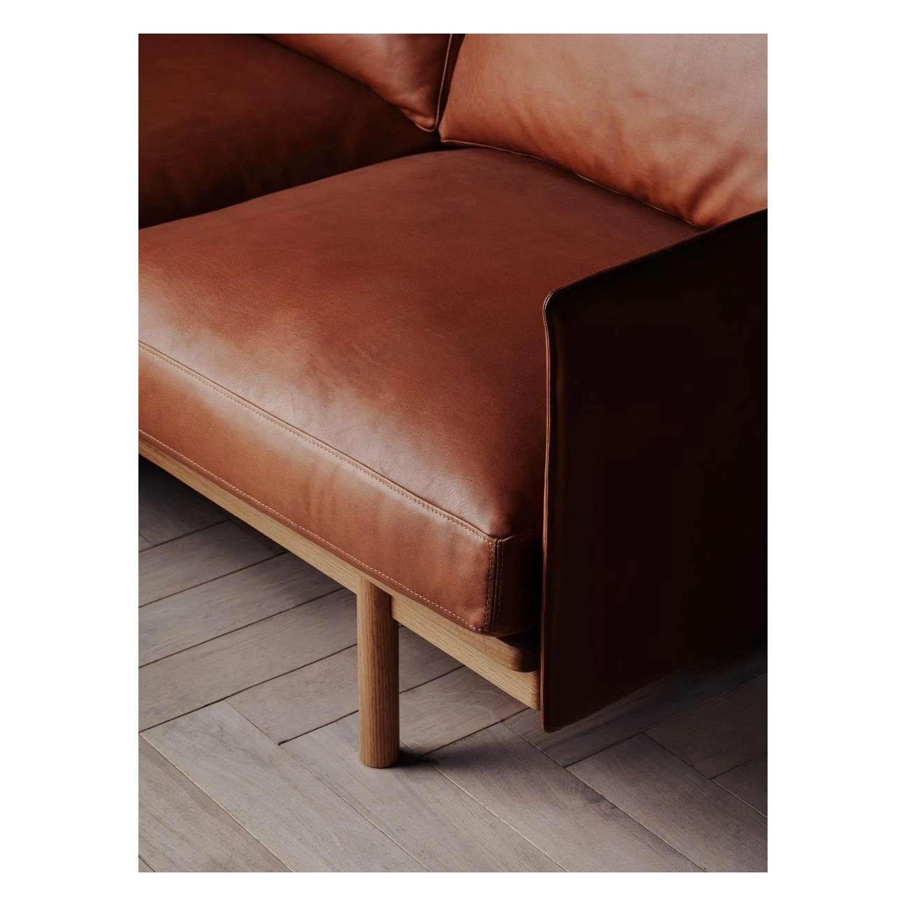 The mid-century inspired Pensive sofa offers both restraint and generosity. Ultra-thin arms bookend soft seat and back cushions, and the upholstered parts are underlined gracefully by a handsome wood base. Cylindrical legs intersect the plinthlike base to enhance visual interest — a rare detail that demands excellent craftsmanship.