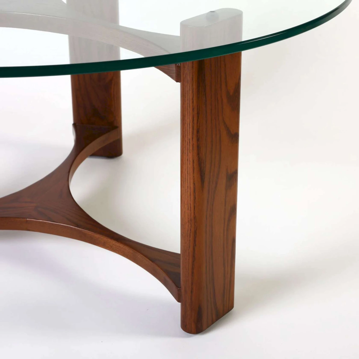 The classic small table suite consisted of a round glass topped occasional table resting on a beautifully shaped solid ash frame.