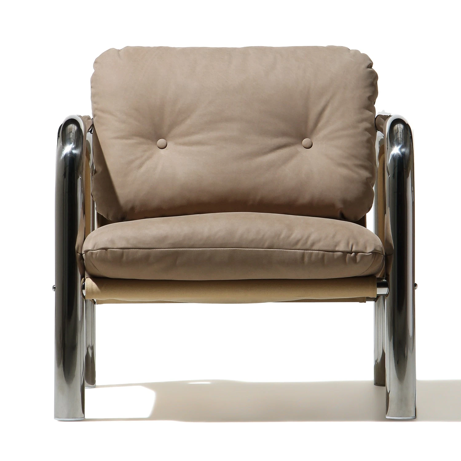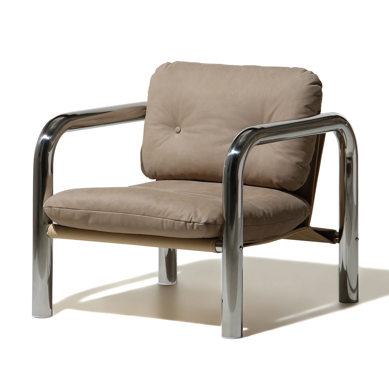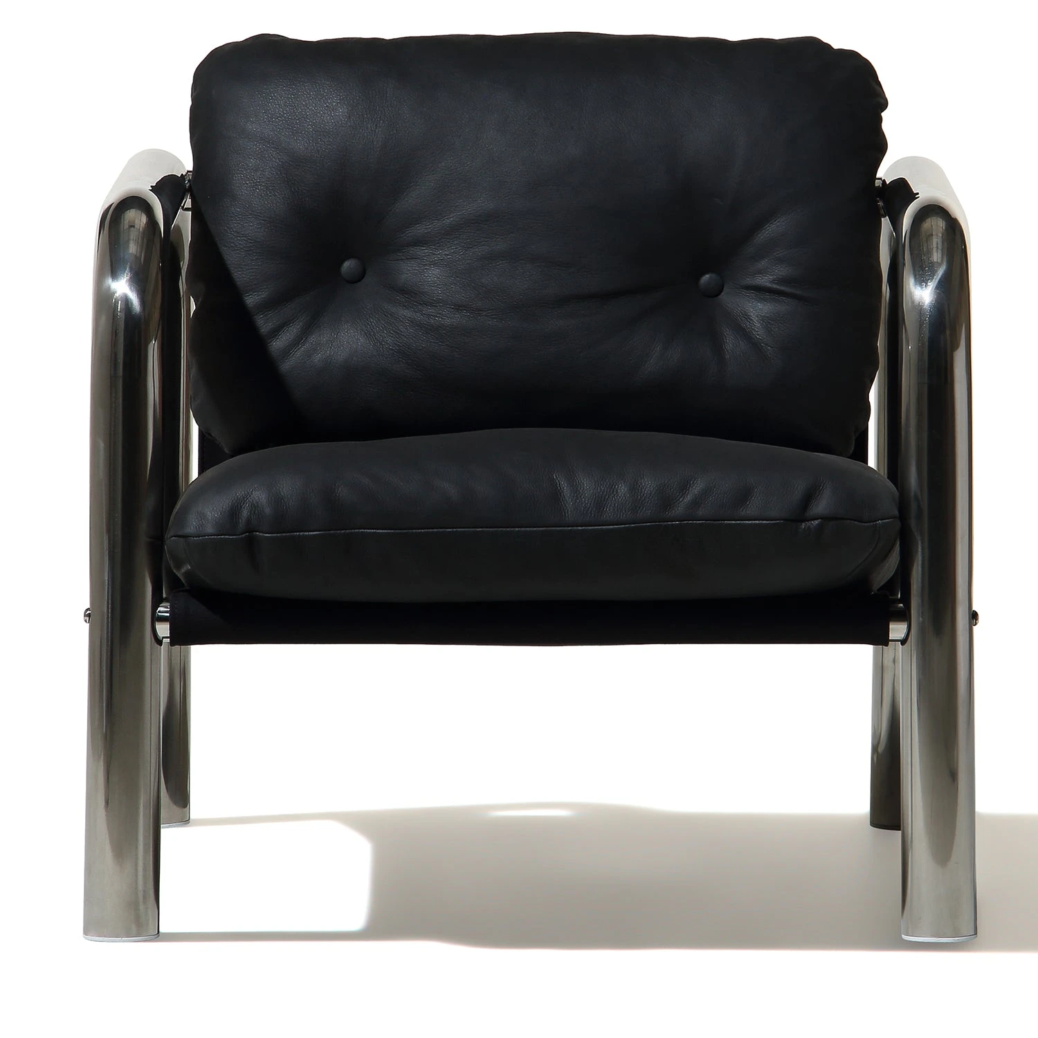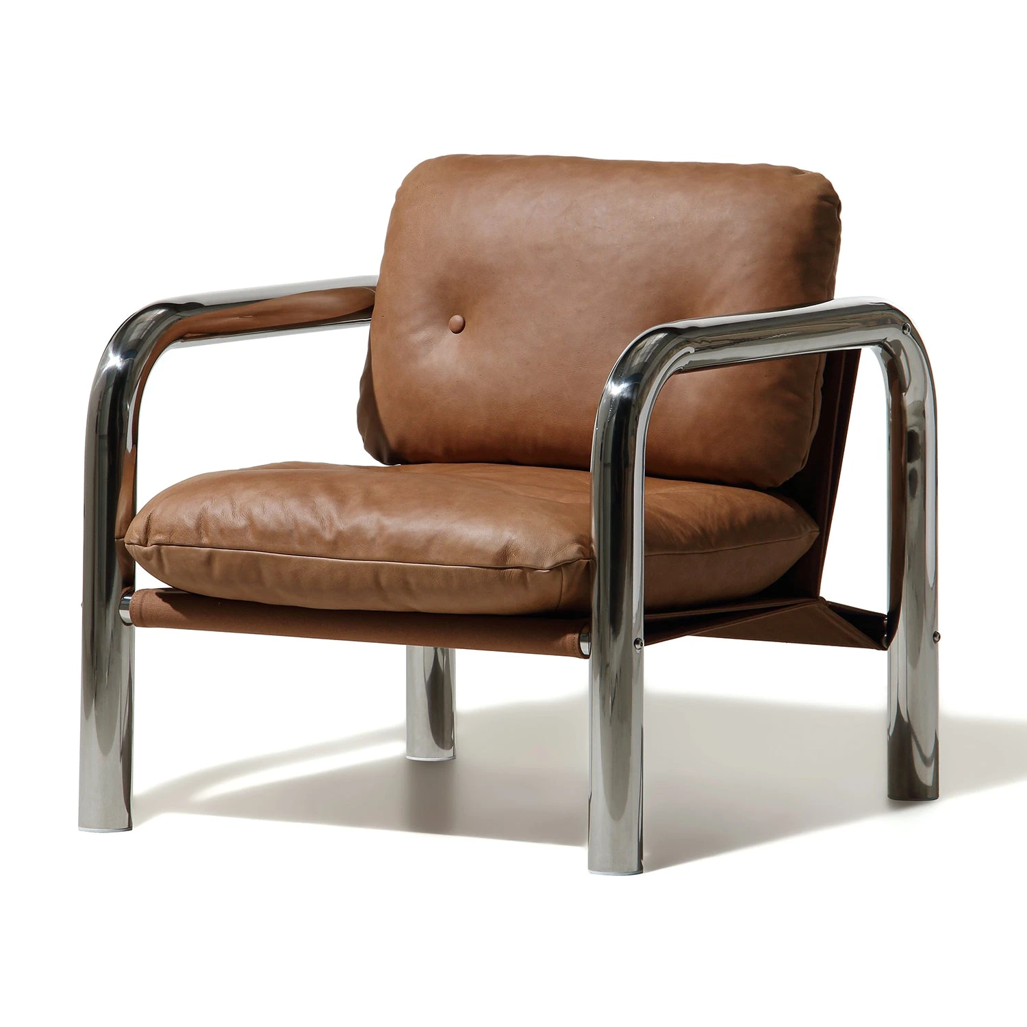 Expertly crafted with a luxurious butter leather cushion, the Rudolph Occasional Chair exudes elegance and sophistication. The polished stainless steel frame adds a touch of modernity to this timeless piece. Experience the ultimate comfort and style with this stunning chair.