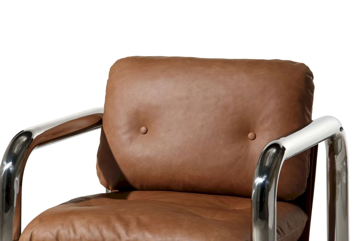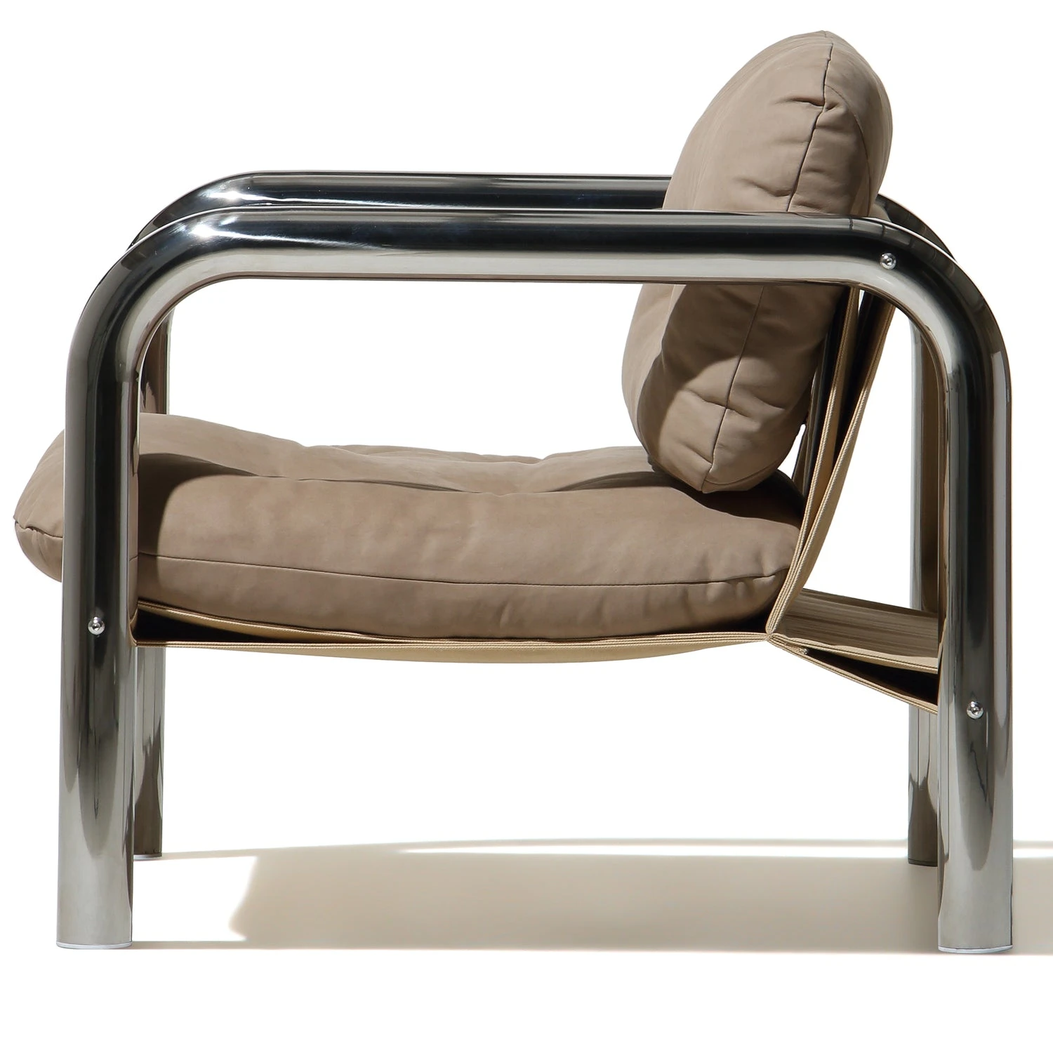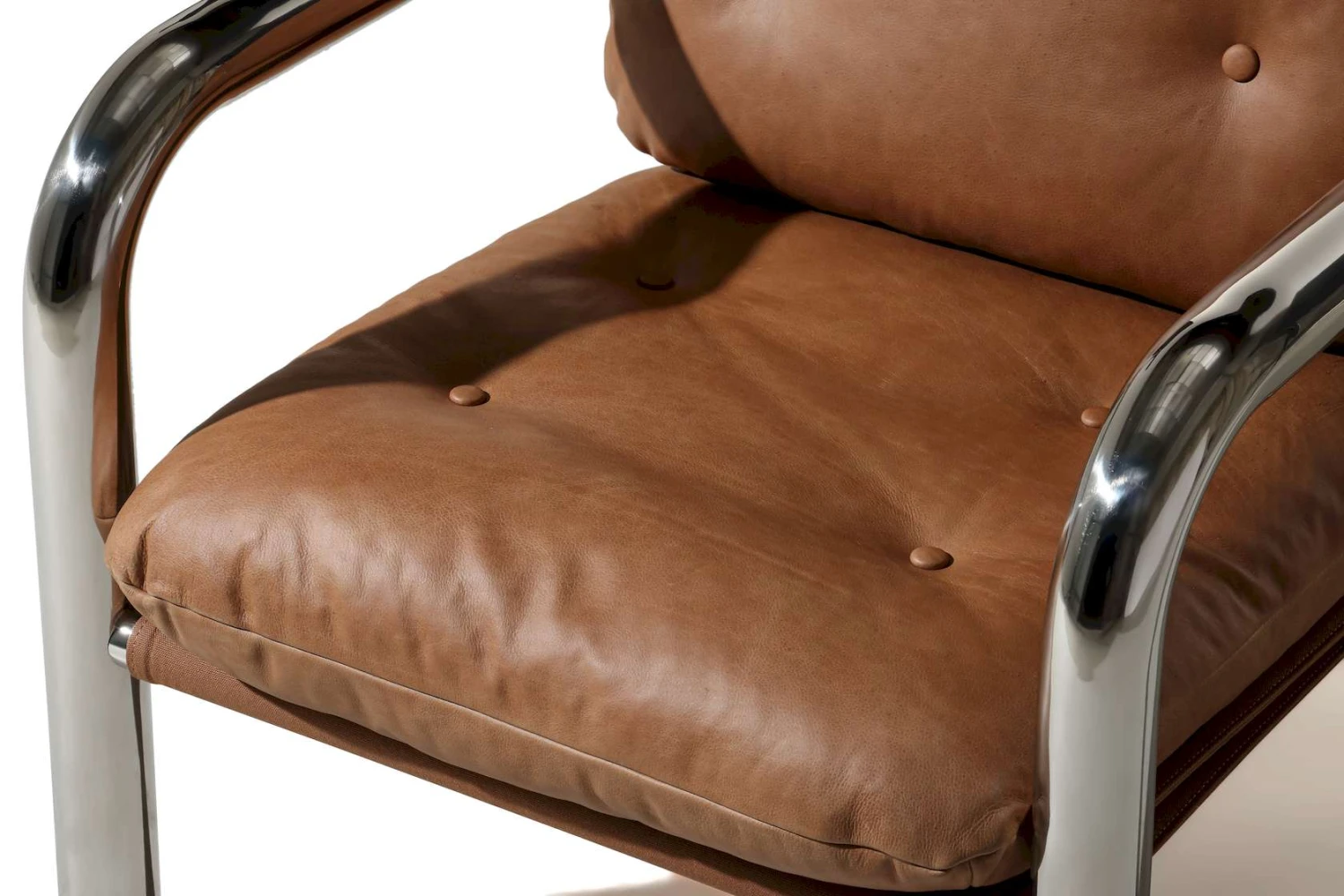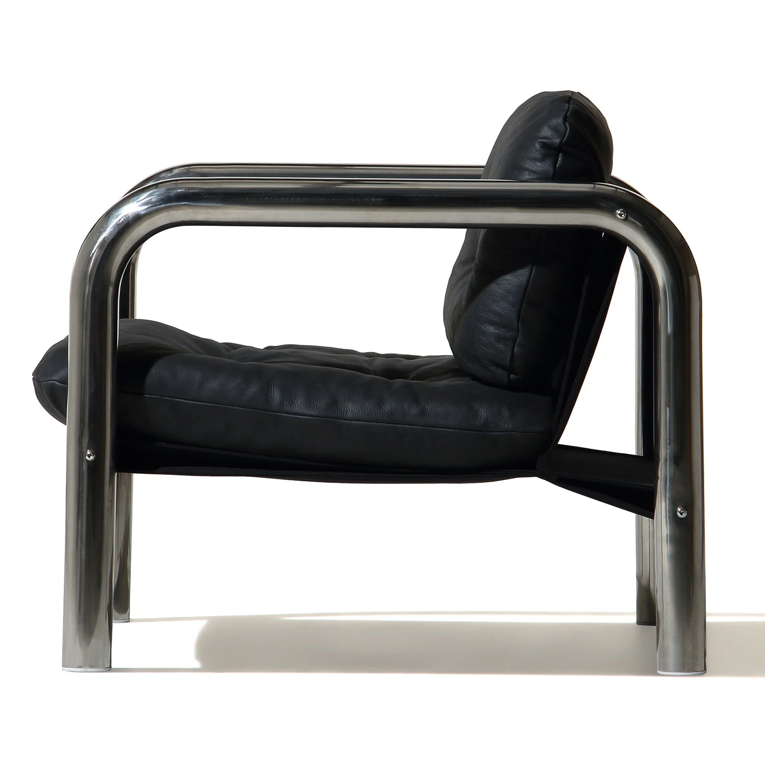 Expertly crafted with a luxurious butter leather cushion, the Rudolph Occasional Chair exudes elegance and sophistication. The polished stainless steel frame adds a touch of modernity to this timeless piece. Experience the ultimate comfort and style with this stunning chair.