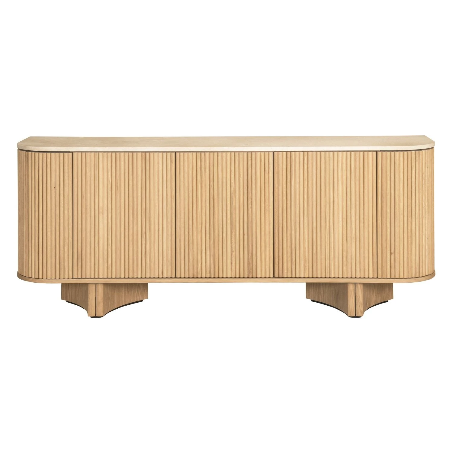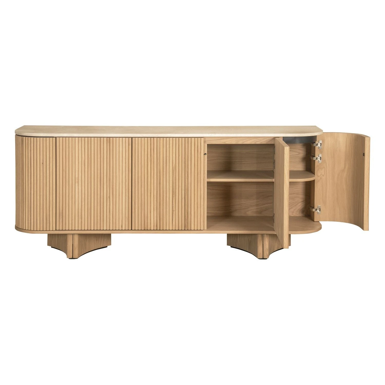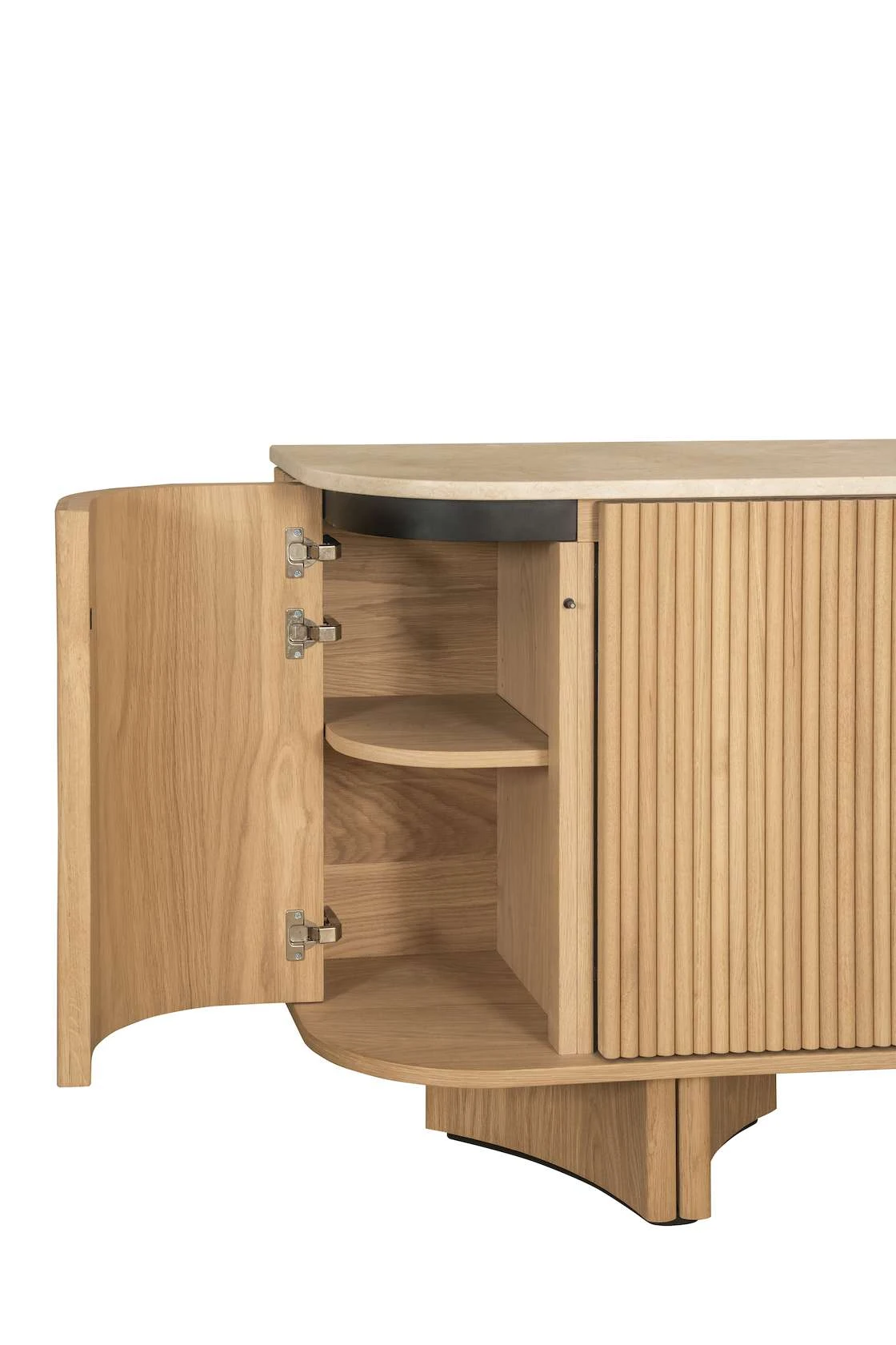 Crema Marfil, a sought-after stone reminiscent of palatial architecture, evoking a sense of timeless grandeur while remaining versatile enough to suit any environment. Whether gracing an intimate dining area or enhancing a sophisticated lounge, the Senna collection blends modernity with classic allure. The light oak frame add an organic warmth, perfectly complementing the stones soft, muted tones. This collection is an ode to quiet elegance, designed for those who appreciate nuanced craftsmanship and the delicate interplay of textures in their living spaces.