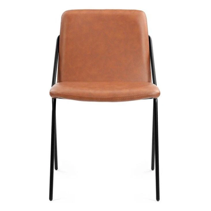 The Sling chair features an ergonomic and refined design that has a comfy leather seat nestled into a powder-coated frame. It’s versatile and functional in design that shines through its minimal appearance and is also stackable to make the most out of your space.