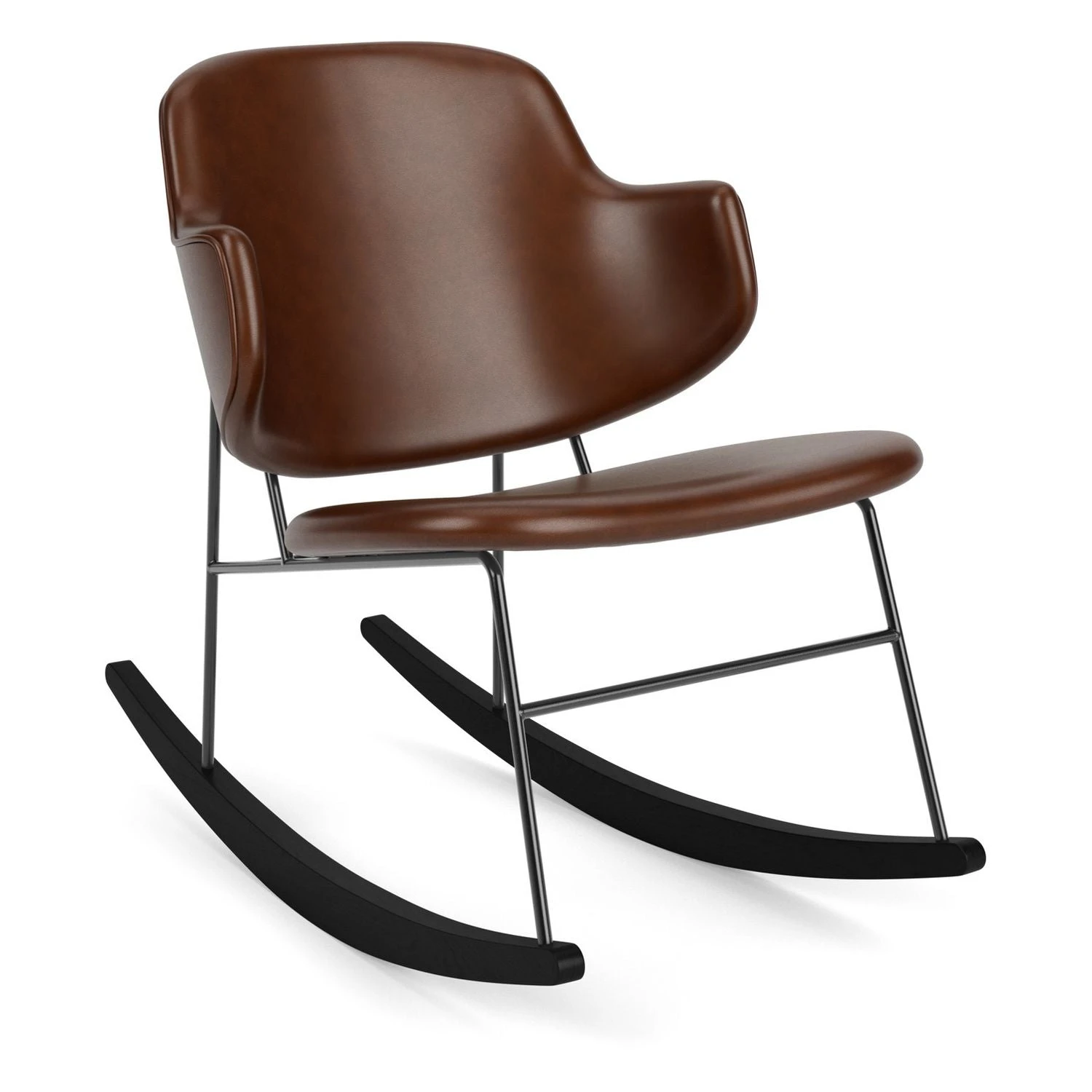 The Penguin Rocking Chair draws inspiration from the American modernists of the 1950s and 1960s. The chair’s construction is characterized by an open design, featuring a curved back and seat upholstered in fabric or leather, all held together by a sturdy steel frame. This chair, created by furniture designer Ib Kofod-Larsen in 1953, embodies Danish cultural heritage and design history. With its elegant silhouette, sculptural form, and organic lines and curves, it remains a contemporary masterpiece that resonates even more strongly in the present.
