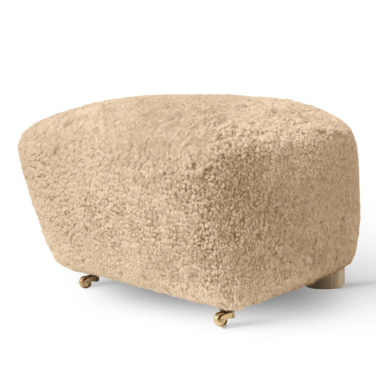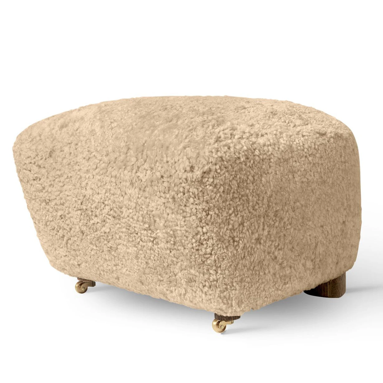 The Tired Man Ottoman has been designed from Flemming Lassen’s original armchair. The soft lines and round shapes from the armchair is continued in the Ottoman. Relaunched in 2015, the award-winning design is offered in plush sheepskin in a nod to the original, and with natural or dark-oiled oak heartwood legs and front brass casters for easy movement.