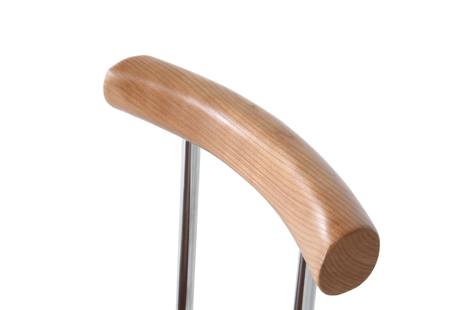 Chair was designed to replicate the origins of its table peers,the wooden back rest represents a fallen log. Chair is completed with a twin leg back panel to match the dining table.